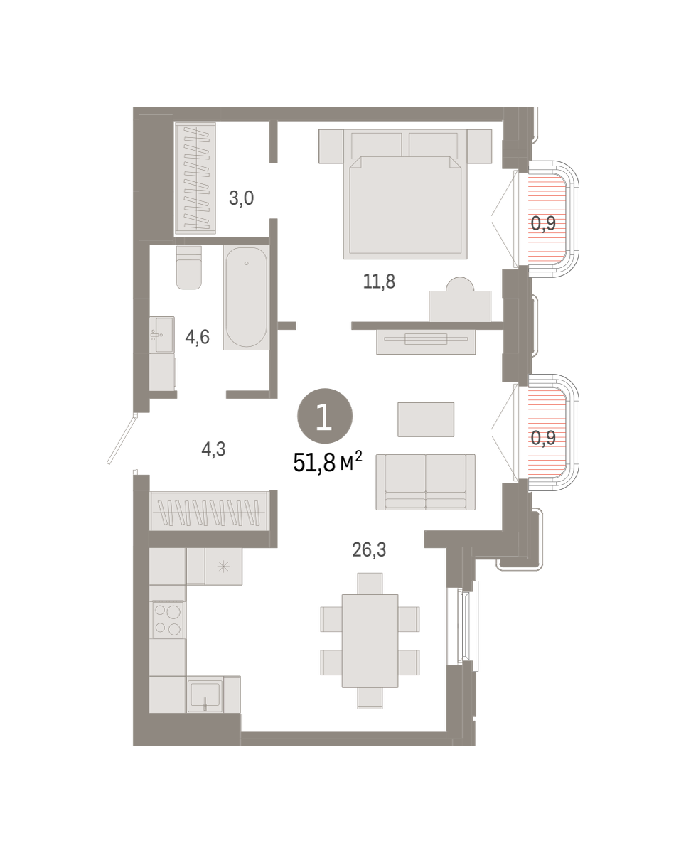 Продаётся с кладовой. Квартира с кухней-гостиной и одной спальней в квартале «На Некрасова». Особенности планировки: балкон, вид во двор, предчистовая отделка. № квартиры в нашей базе: НКР02-Ж2.8.6.
