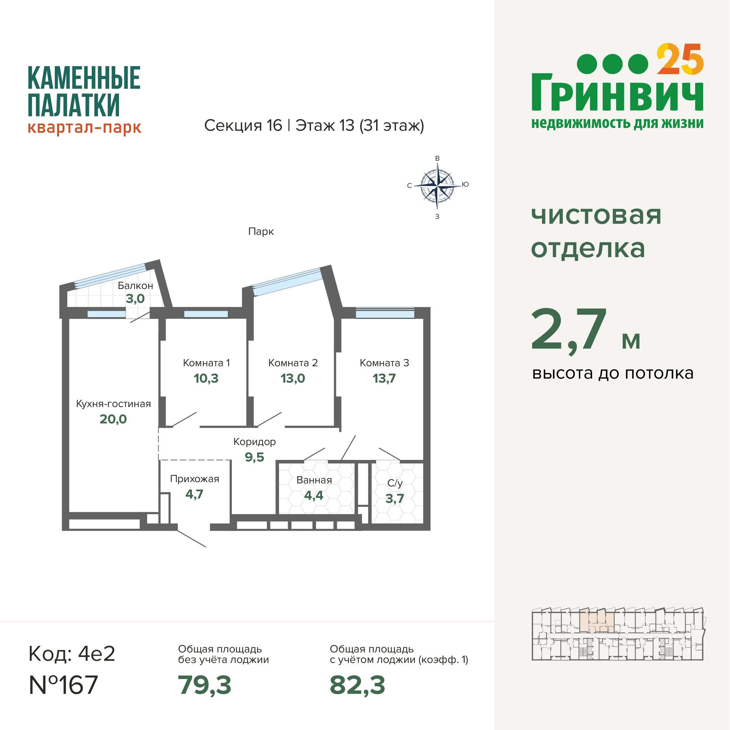 • Высокие потолки (2,7 м);