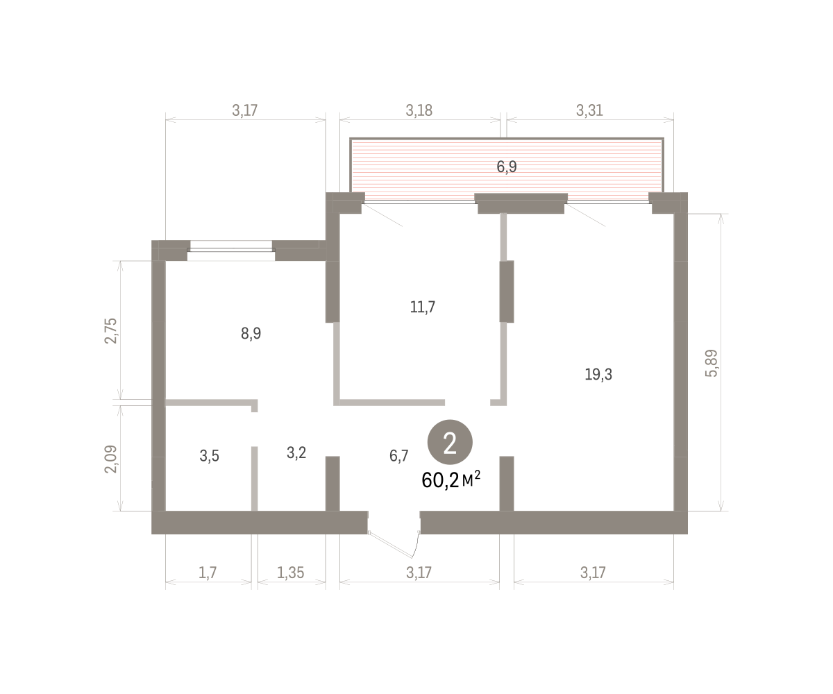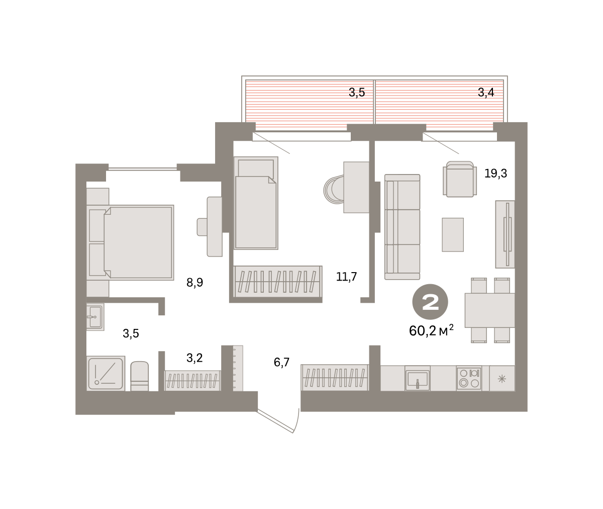 Квартира с кухней-гостиной и одной спальней в квартале «Депо». Особенности планировки: балкон, гардеробная, мастер-спальня, предчистовая отделка, рабочий кабинет. № квартиры в нашей базе: ДЕП07-Ж2.5.3.