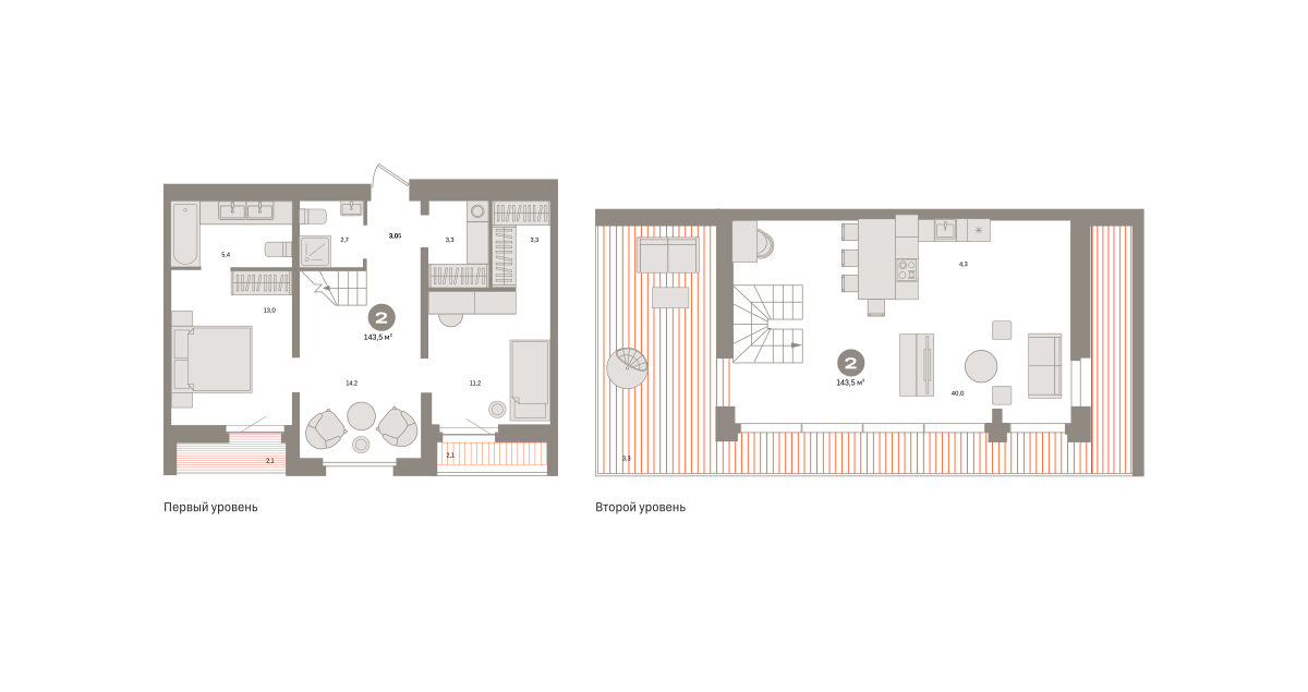 Квартира с кухней-гостиной и двумя спальнями в Южных кварталах. Особенности планировки: гардеробная, летняя кухня на крыше, лоджия, мастер-спальня, окно в коридоре, постирочная, предчистовая отделка, разнесённые спальни, терраса на крыше.