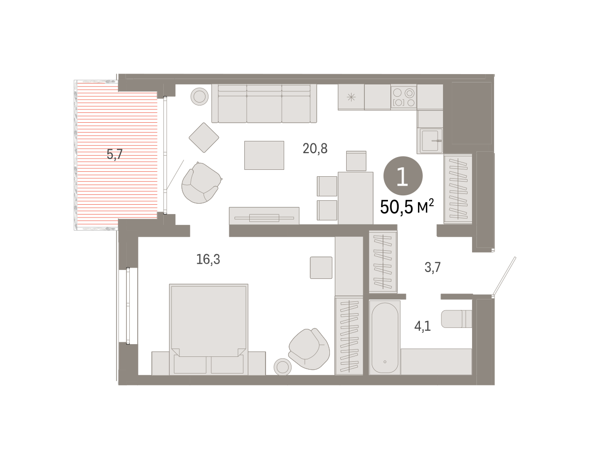 Однокомнатная квартира в новых домах «Южных кварталов» — это квартира с объединенной кухней-гостиной, отдельной спальней, ванной комнатой и нишами под хранение. Кухня-гостиная — это общественное пространство квартиры, где удобно собираться с семьей и друзьями. Здесь легко поместится зона приготовления пищи, стол со стульями для совместных трапез, мягкие места для отдыха и телевизор. Также в квартире спроектированы гардеробные и хозяйственные комнаты. Есть варианты квартир с тёплой лоджией, где можно разместить рабочее место, или собственной террасой на первом этаже. Купить однокомнатную квартиру в районе Южного автовокзала в Екатеринбурге выгодно напрямую от застройщика «Брусника».