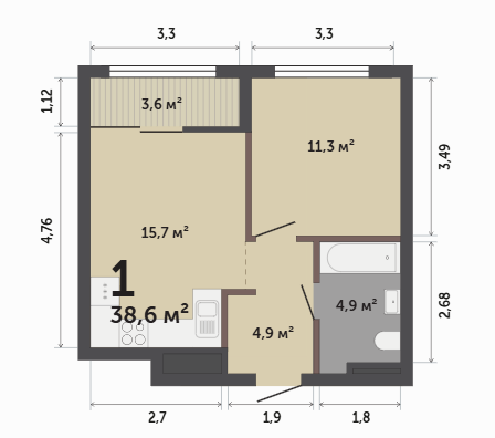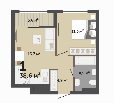 1-к квартира | 28.20 м² | 6 - 8 эт.