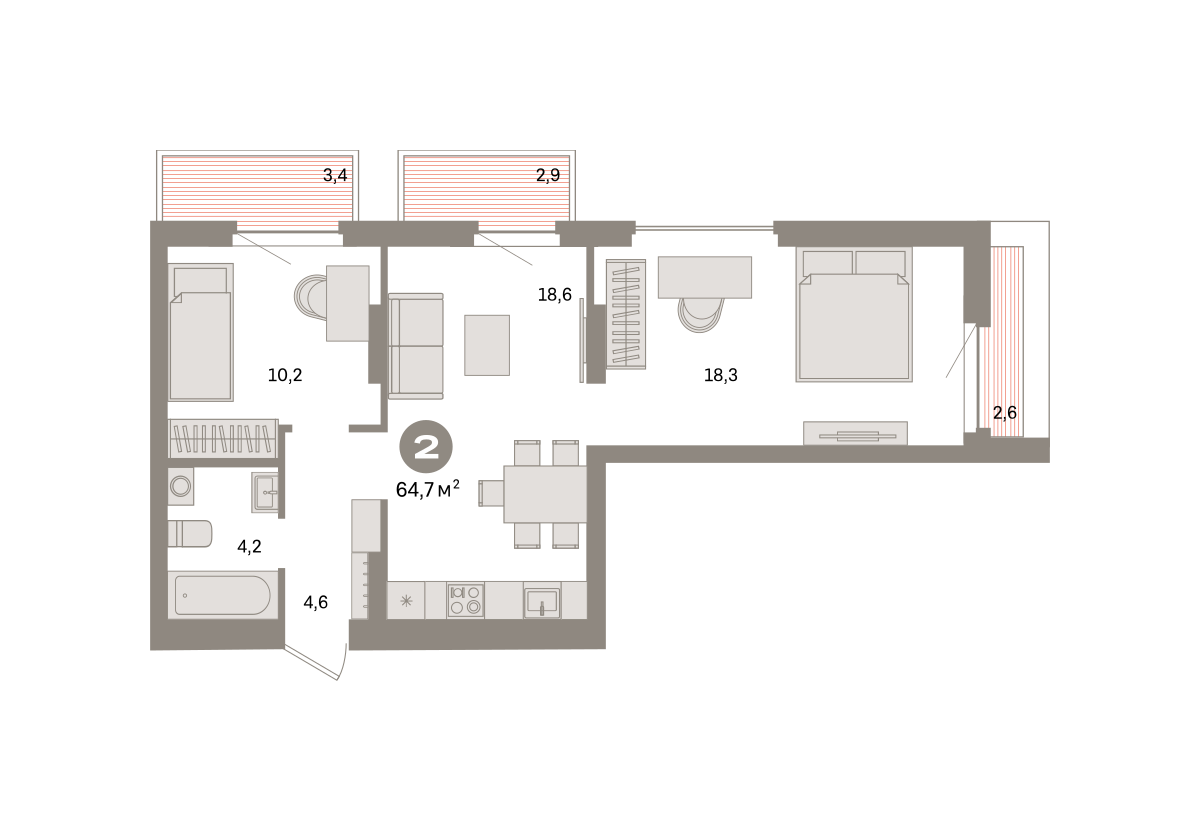 Продаётся с кладовой. Квартира с кухней-гостиной и двумя спальнями в квартале «Депо». Особенности планировки: балкон, предчистовая отделка, разнесённые спальни. № квартиры в нашей базе: ДЕП07-Ж3.5.3.
