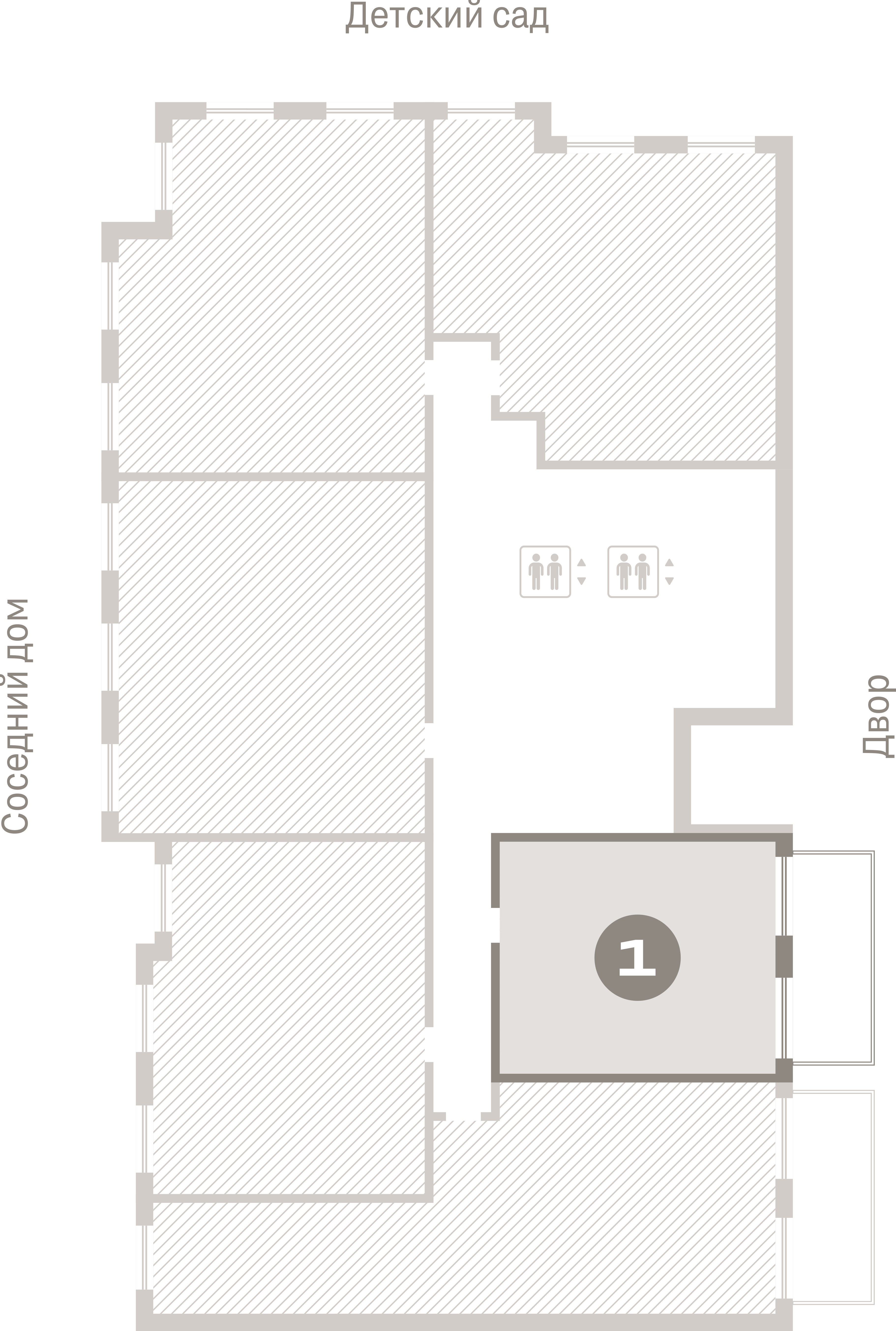 Квартира с кухней-гостиной и одной спальней в Южных кварталах. Особенности планировки: вид во двор, гардеробная, потолки 3 м и выше, предчистовая отделка, терраса. № квартиры в нашей базе: ЮКВ08-Ж1.2.1.