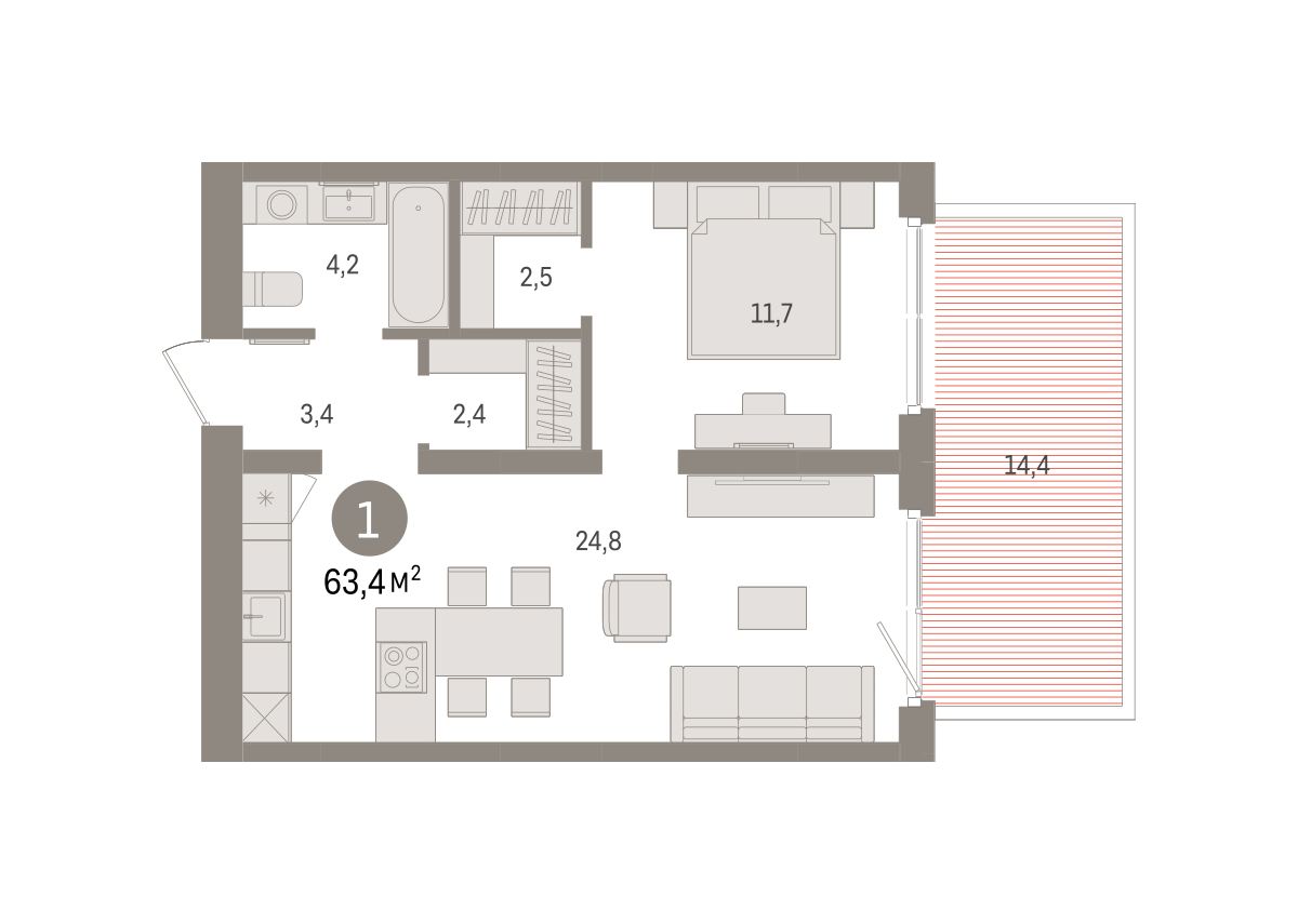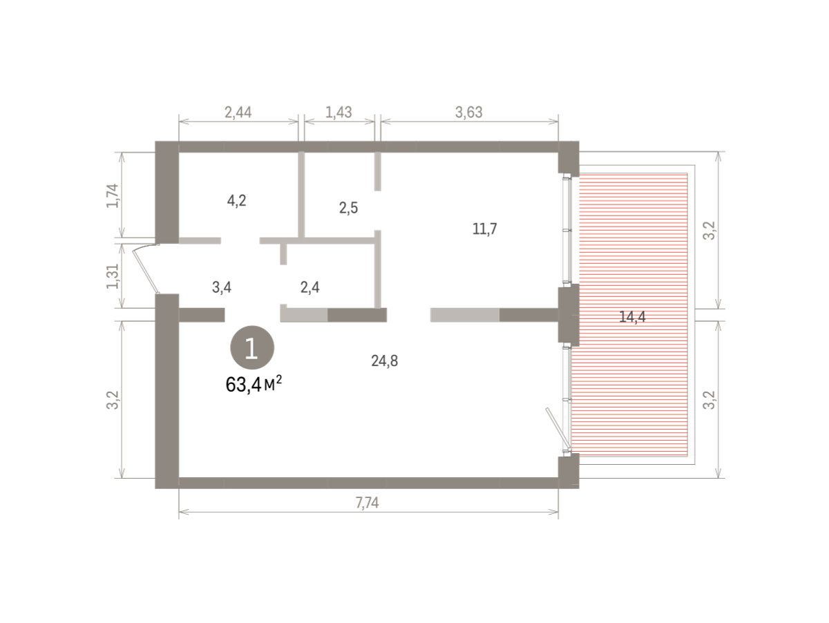 63.00 м² | 18 - 24 эт.