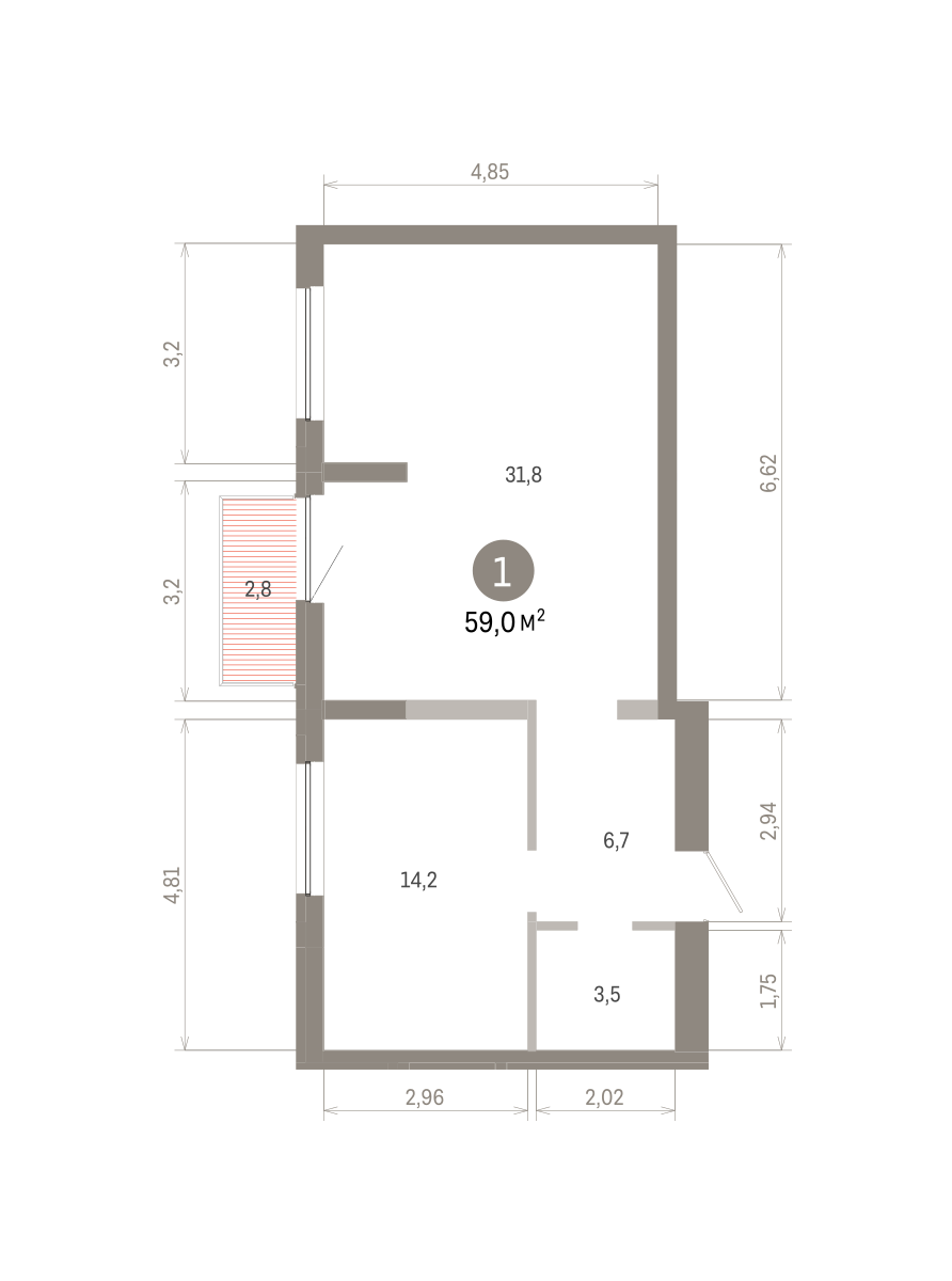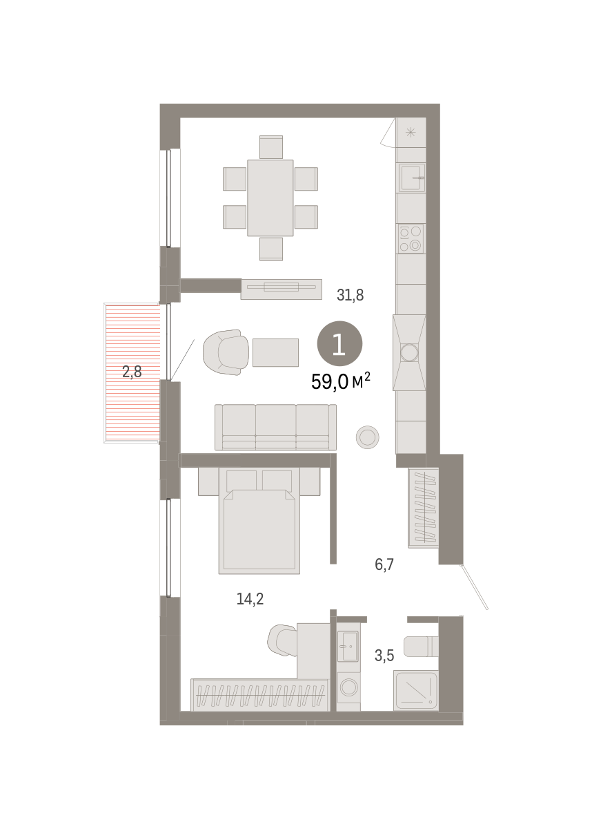 Продаётся с кладовой. Квартира с кухней-гостиной и одной спальней в Южных кварталах. Особенности планировки: балкон, вид во двор, предчистовая отделка. № квартиры в нашей базе: ЮКВ11-Ж2.9.1.