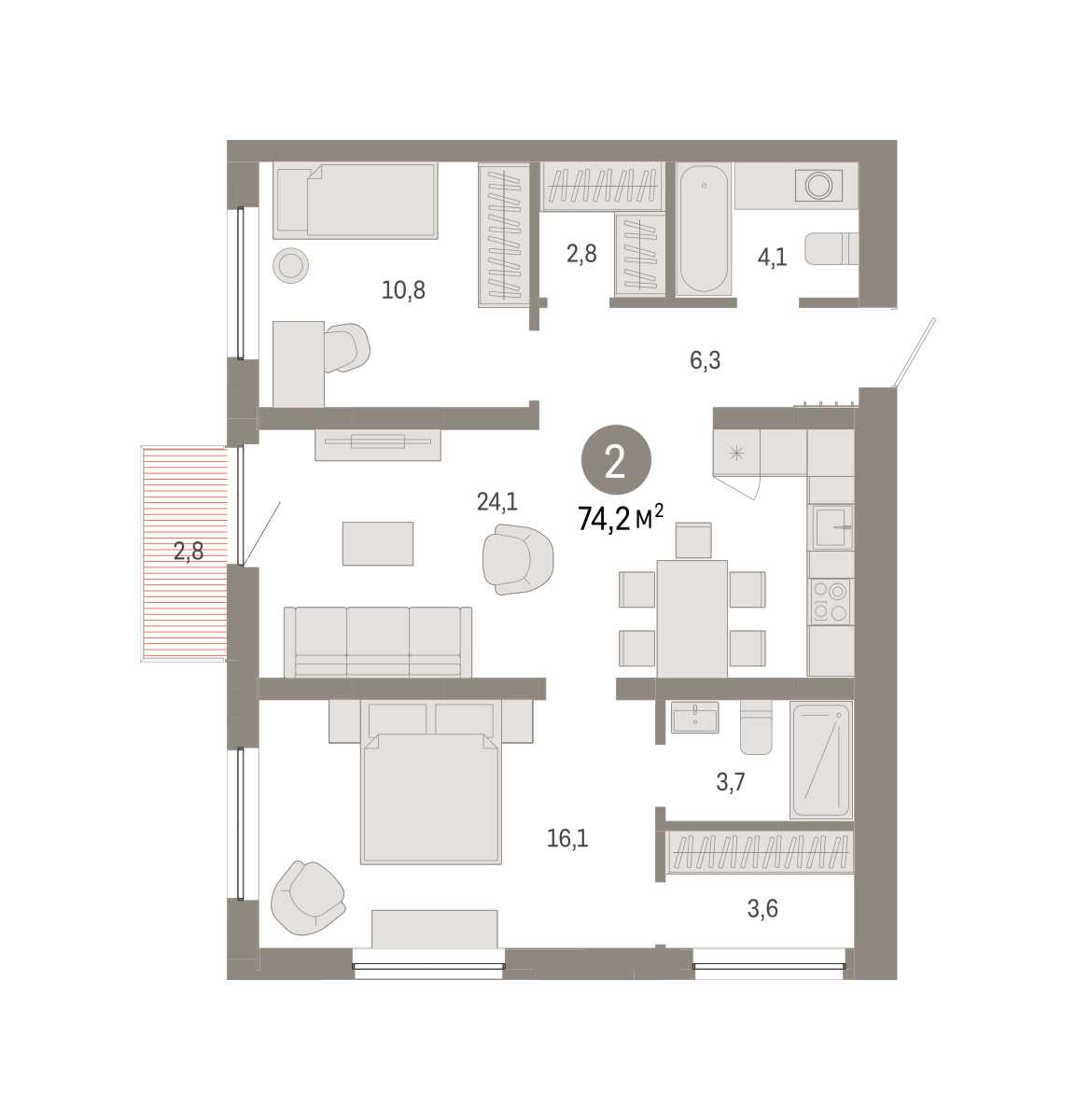 74.00 м² | 13 - 16 эт.