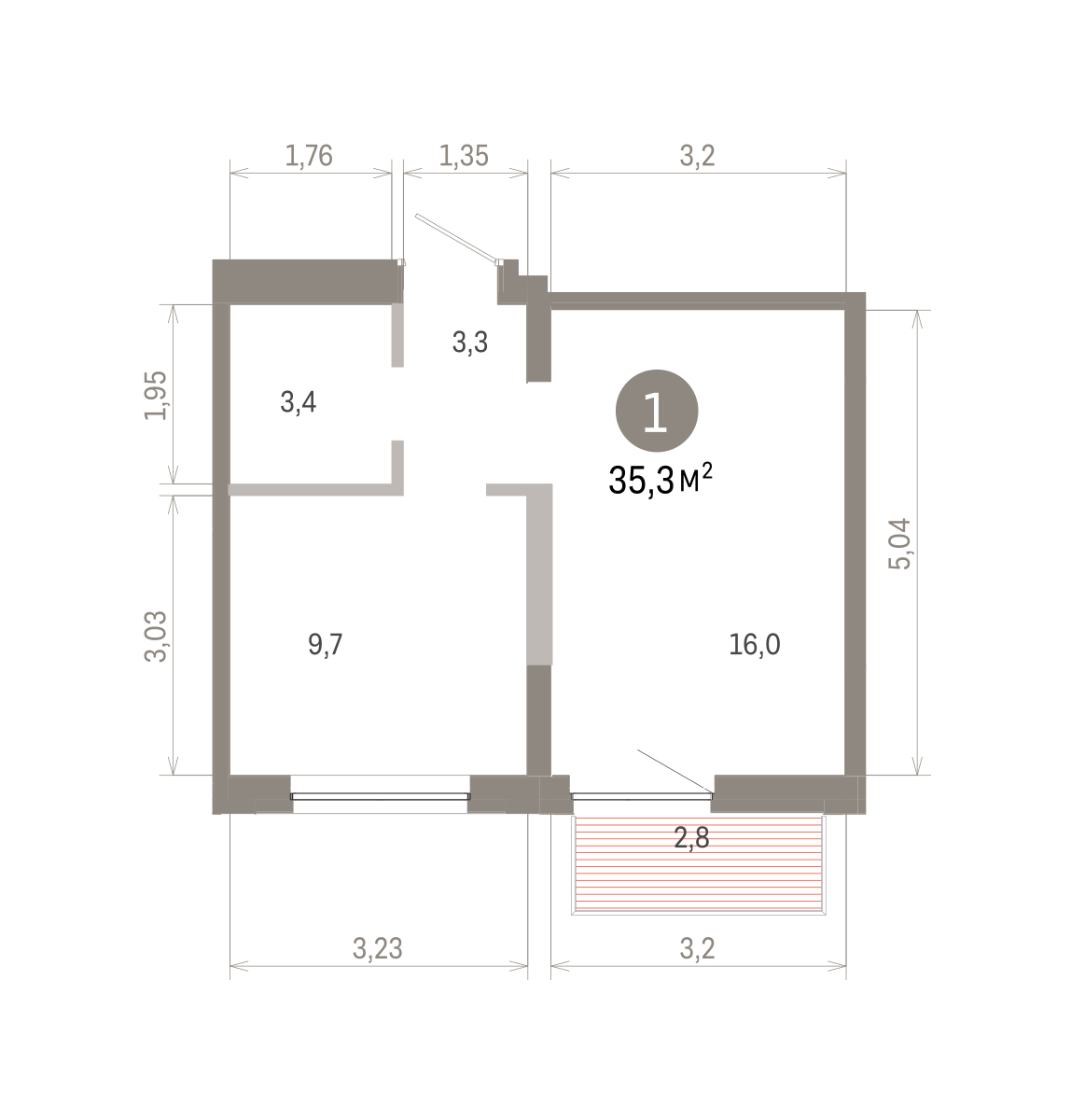 35.00 м² | 8 - 9 эт.