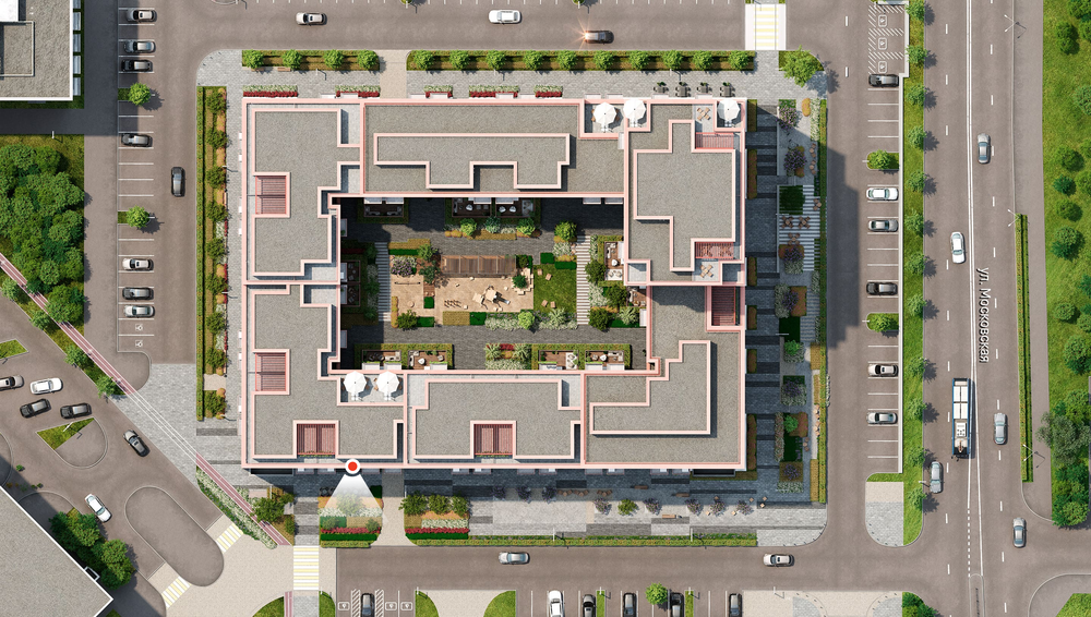 Квартира с кухней-гостиной и двумя спальнями в Южных кварталах. Особенности планировки: гардеробная, летняя кухня на крыше, лоджия, мастер-спальня, окно в коридоре, постирочная, предчистовая отделка, разнесённые спальни, терраса на крыше.
