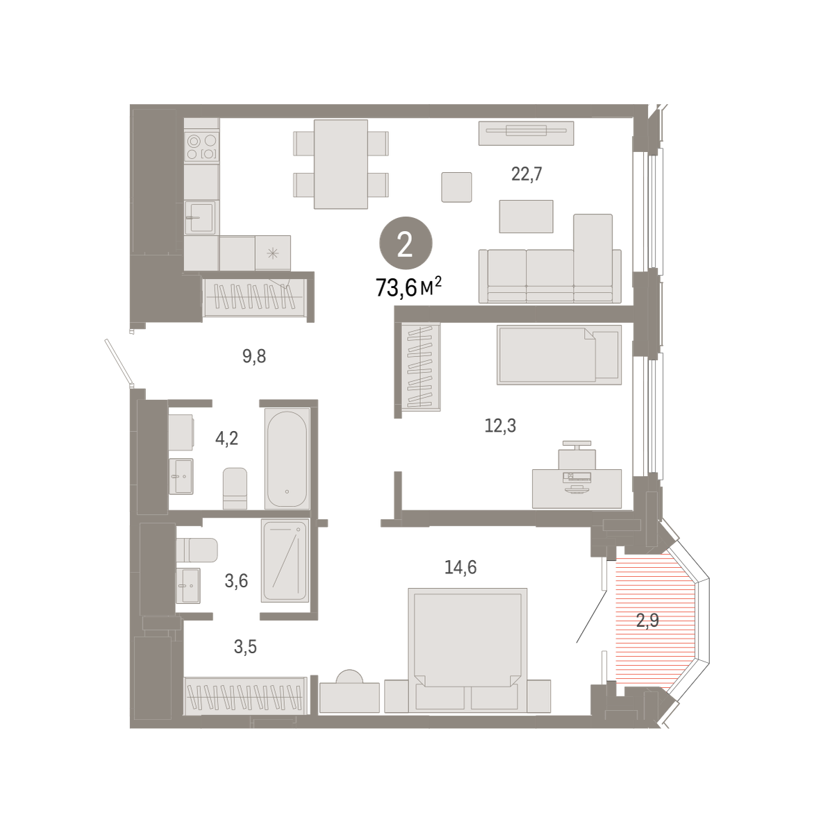 Продаётся с кладовой. Квартира с кухней-гостиной и двумя спальнями в квартале «На Некрасова». Особенности планировки: вид во двор, второй санузел, лоджия, мастер-спальня, предчистовая отделка. № квартиры в нашей базе: НКР02-Ж1.11.6.