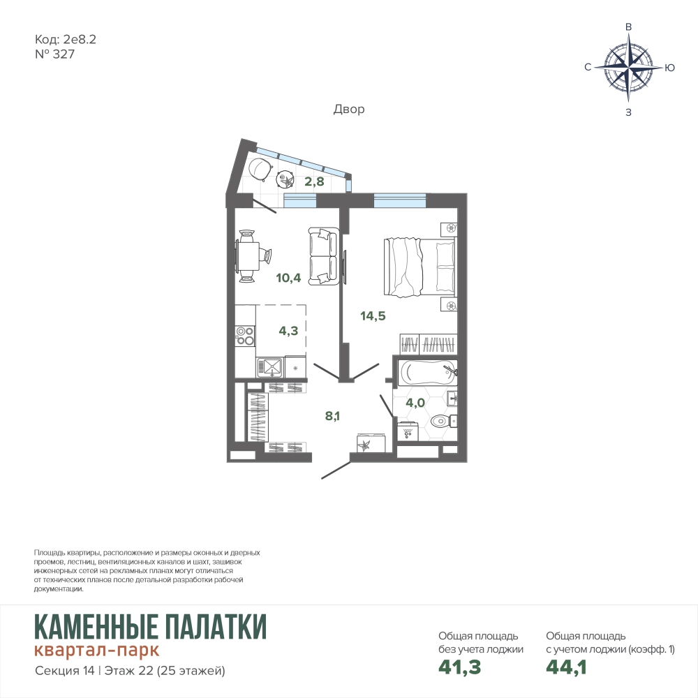44.12 м² | 22 - 25 эт.