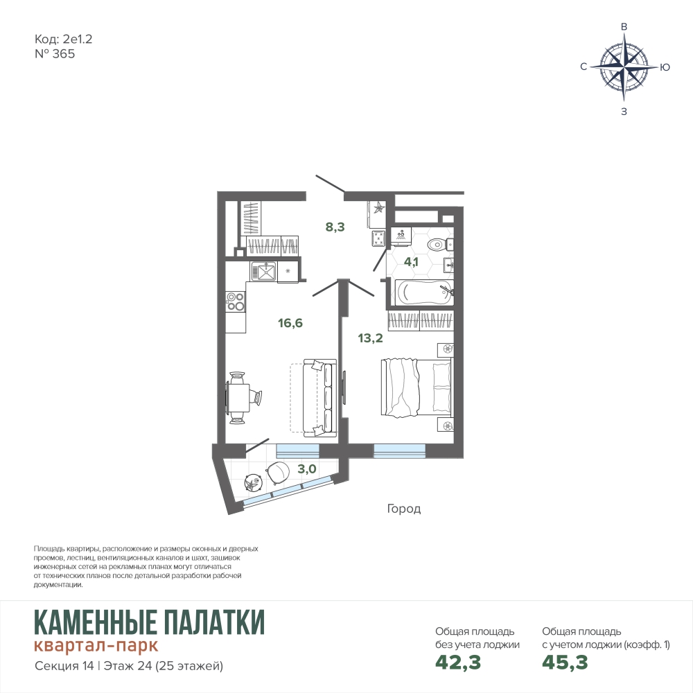 42.00 м² | 16 - 16 эт.