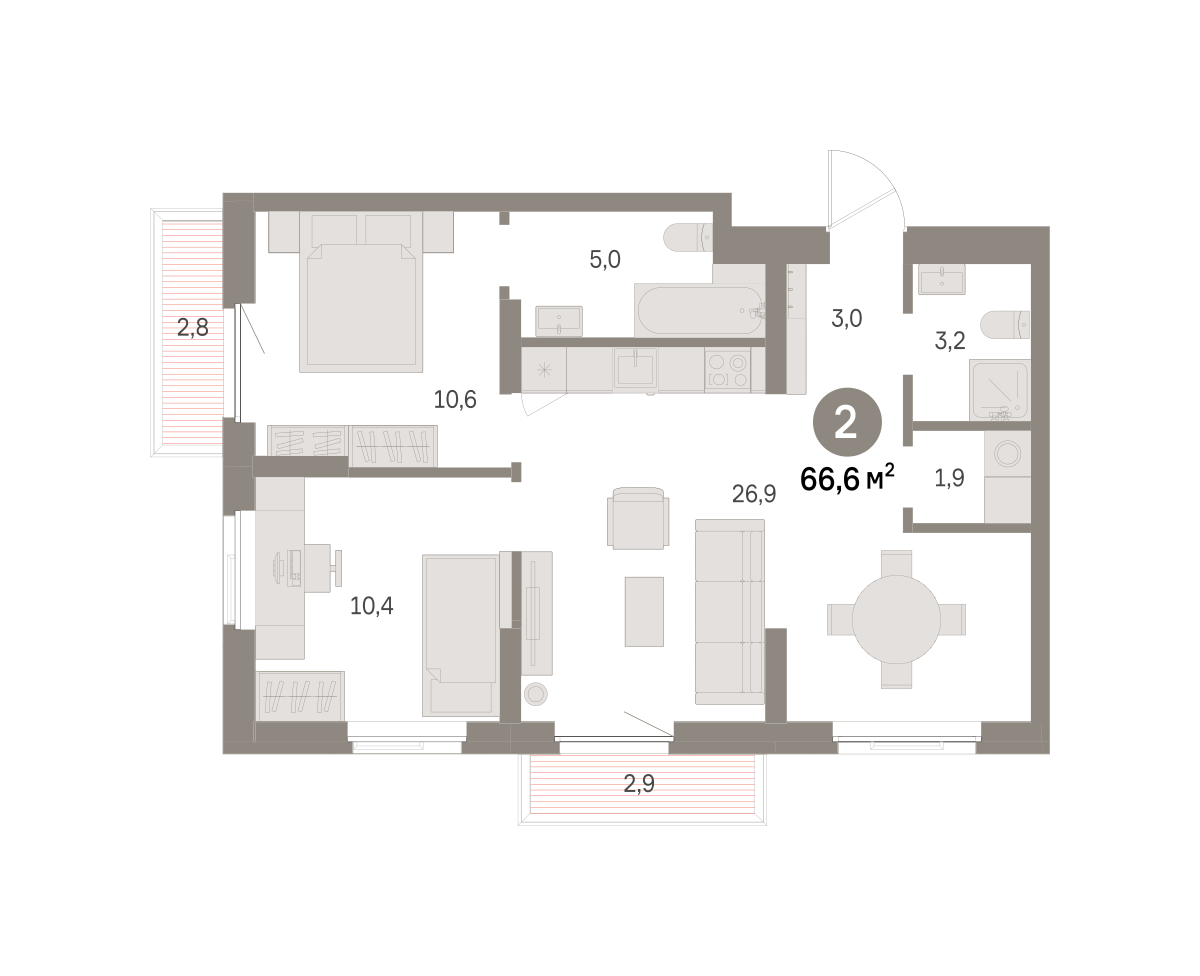 Продаётся с кладовой. Квартира с кухней-гостиной и двумя спальнями в районе Шишимская горка. Особенности планировки: балкон, мастер-спальня, постирочная, предчистовая отделка, разнесённые спальни. № квартиры в нашей базе: ШГР06-Ж4.5.2.