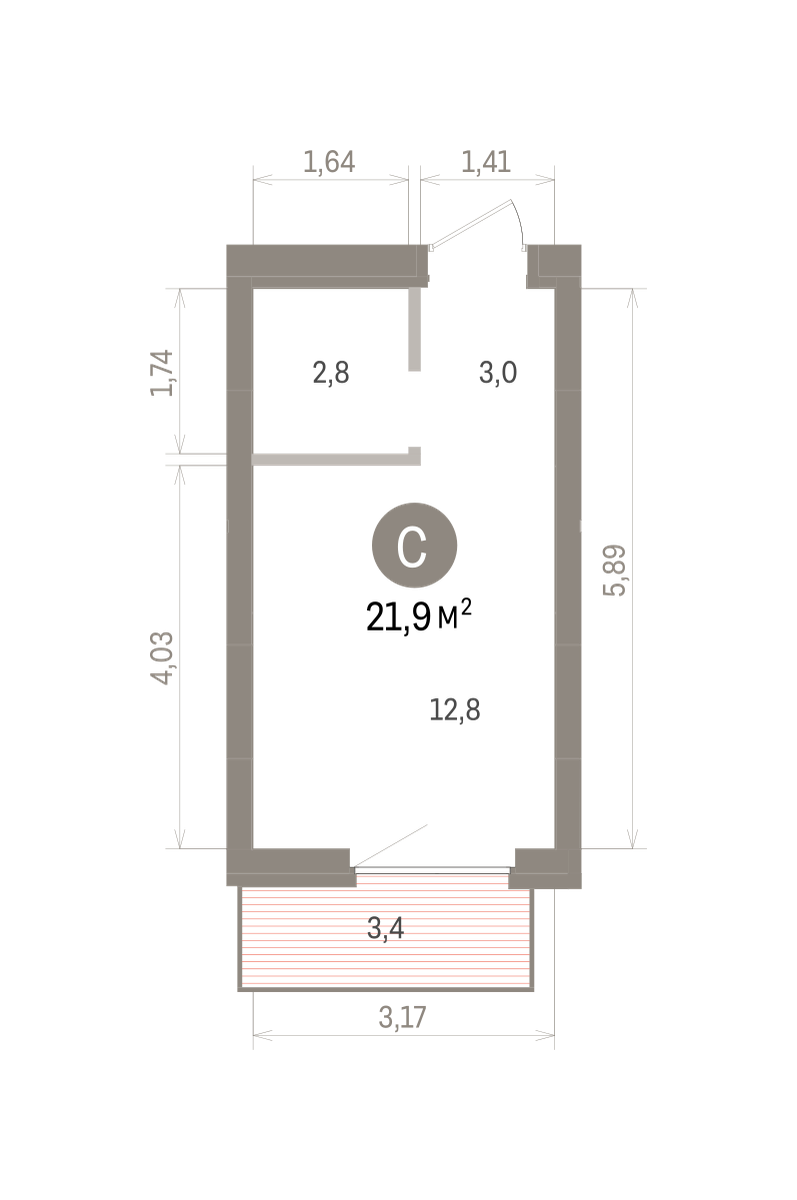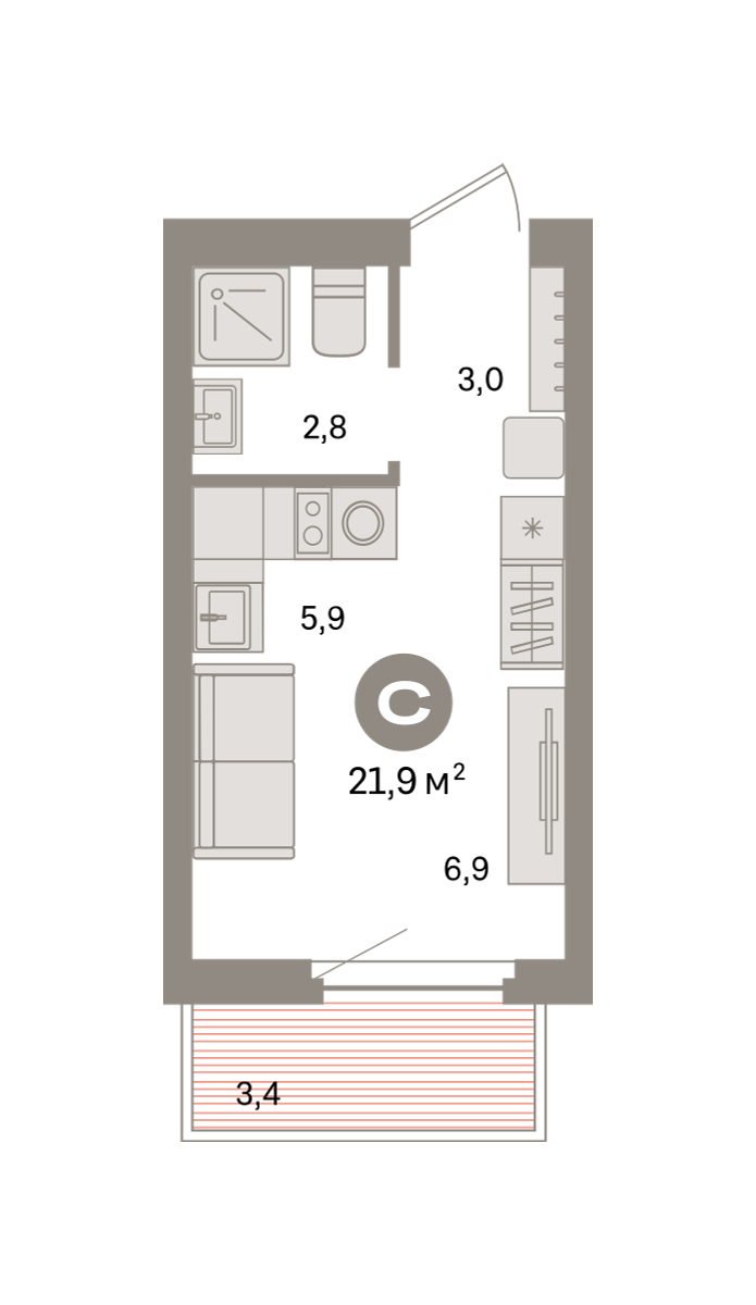 Студия в квартале «Депо». Особенности планировки: балкон, предчистовая отделка. № квартиры в нашей базе: ДЕП07-Ж4.7.6.