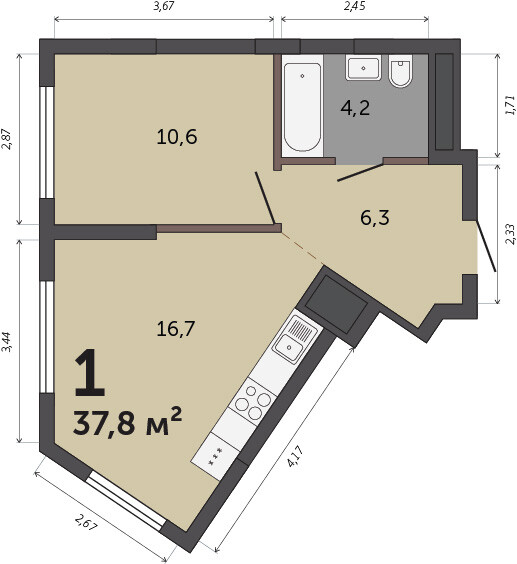 37.80 м² | 26 - 30 эт.