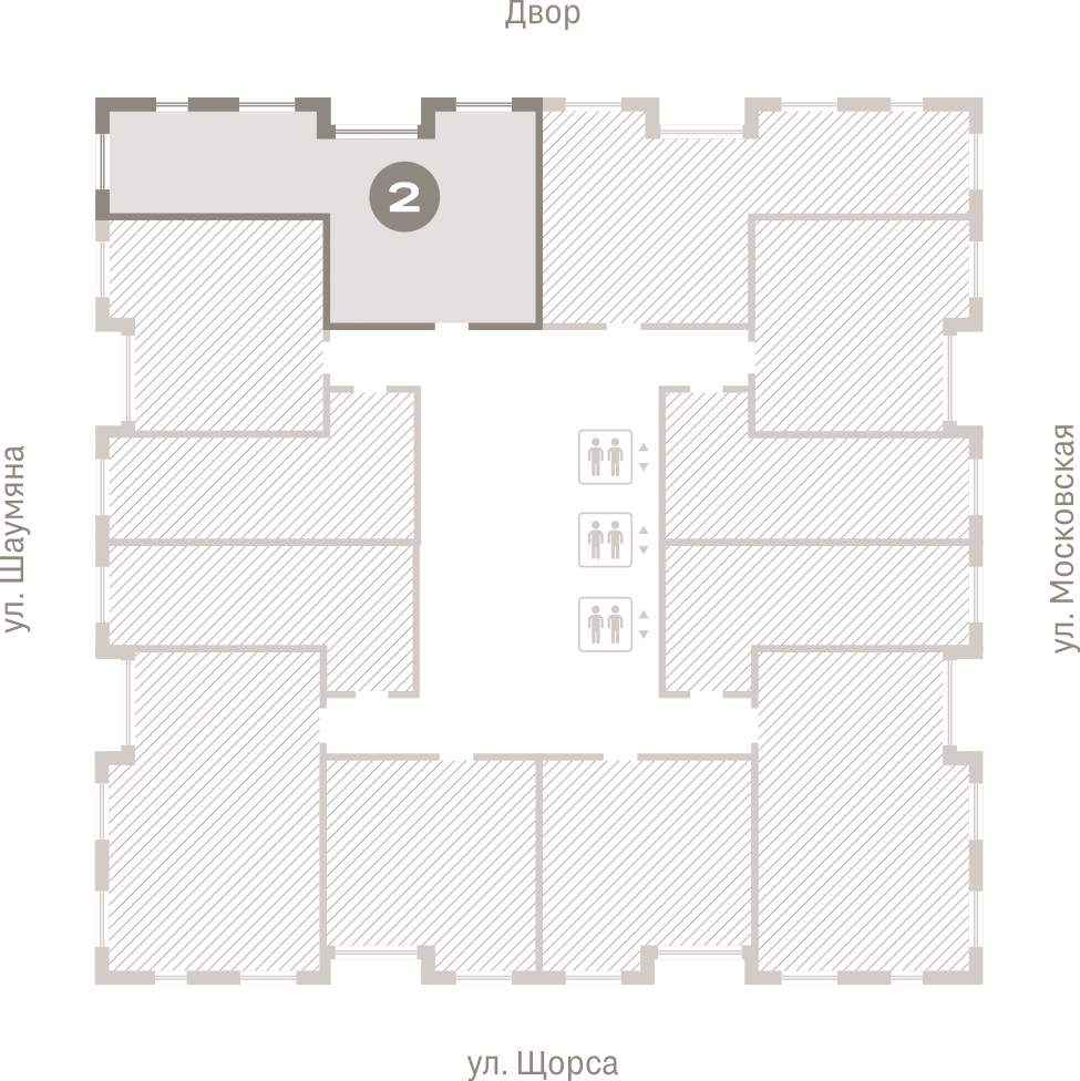 Двор закрыт от машин и оформлен в стиле скандинавского натурализма. Он похож на парк, сформировавшийся без участия человека и сохраняющий обаяние в течение всего года. Под домом запроектирован подземный паркинг, а также кладовые для хранения сезонных вещей.