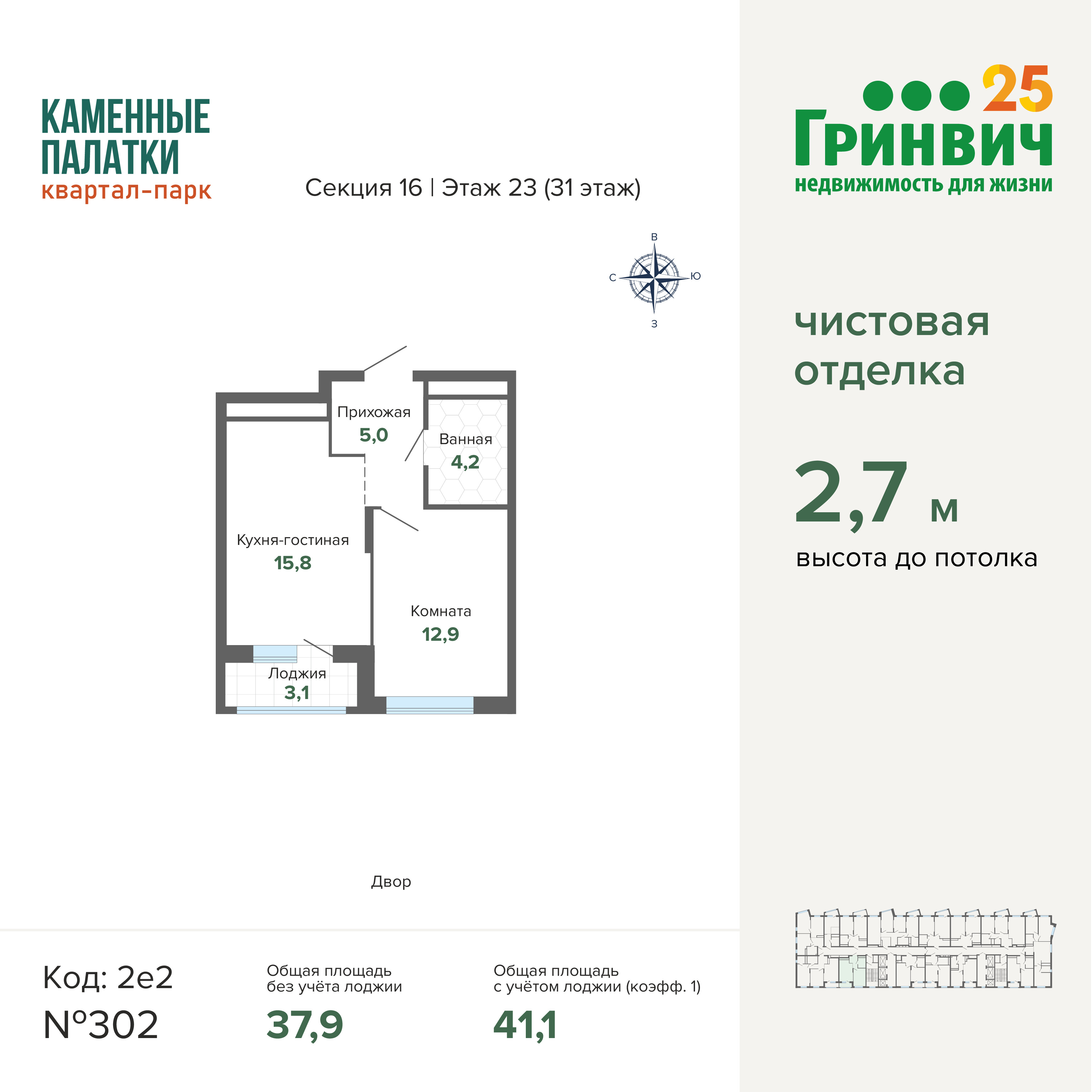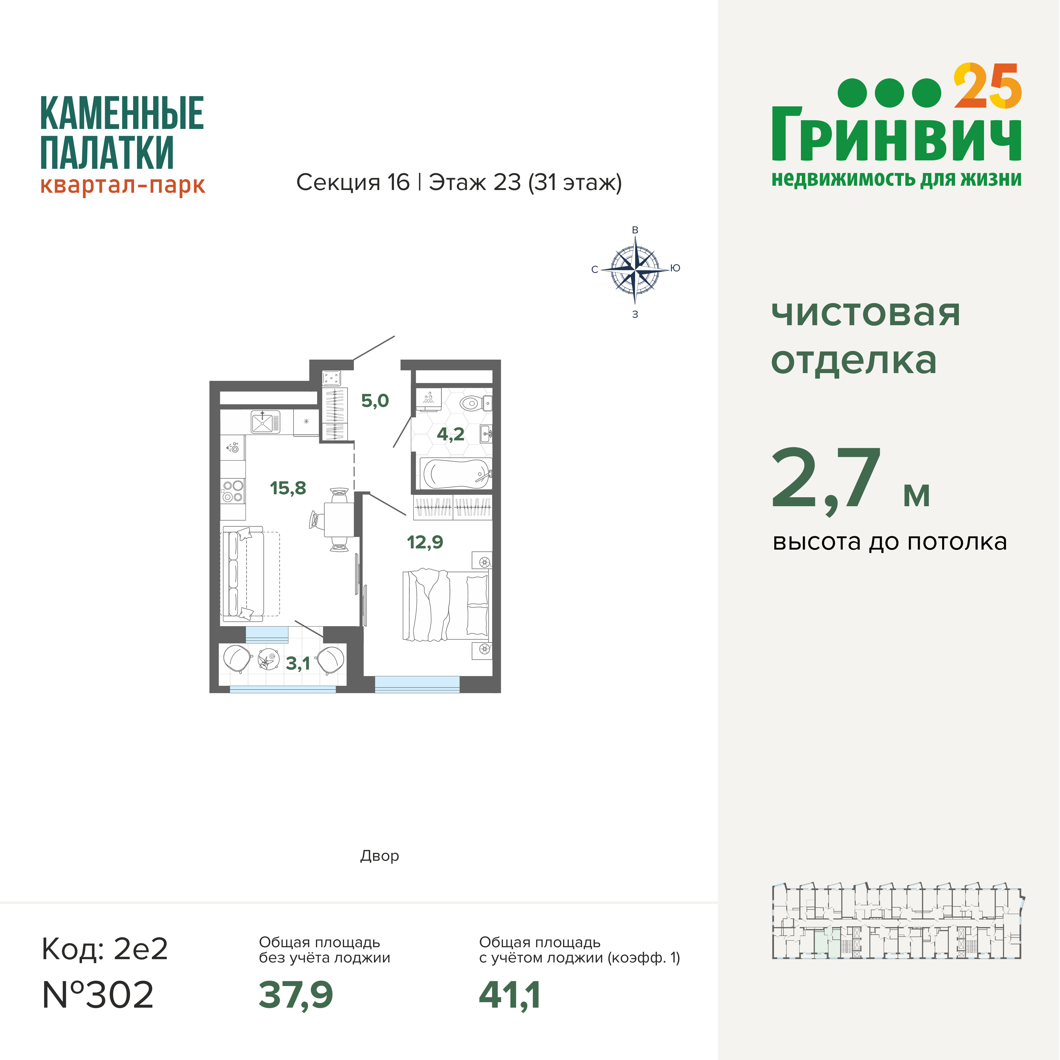 • Высокие потолки (2,7 м);