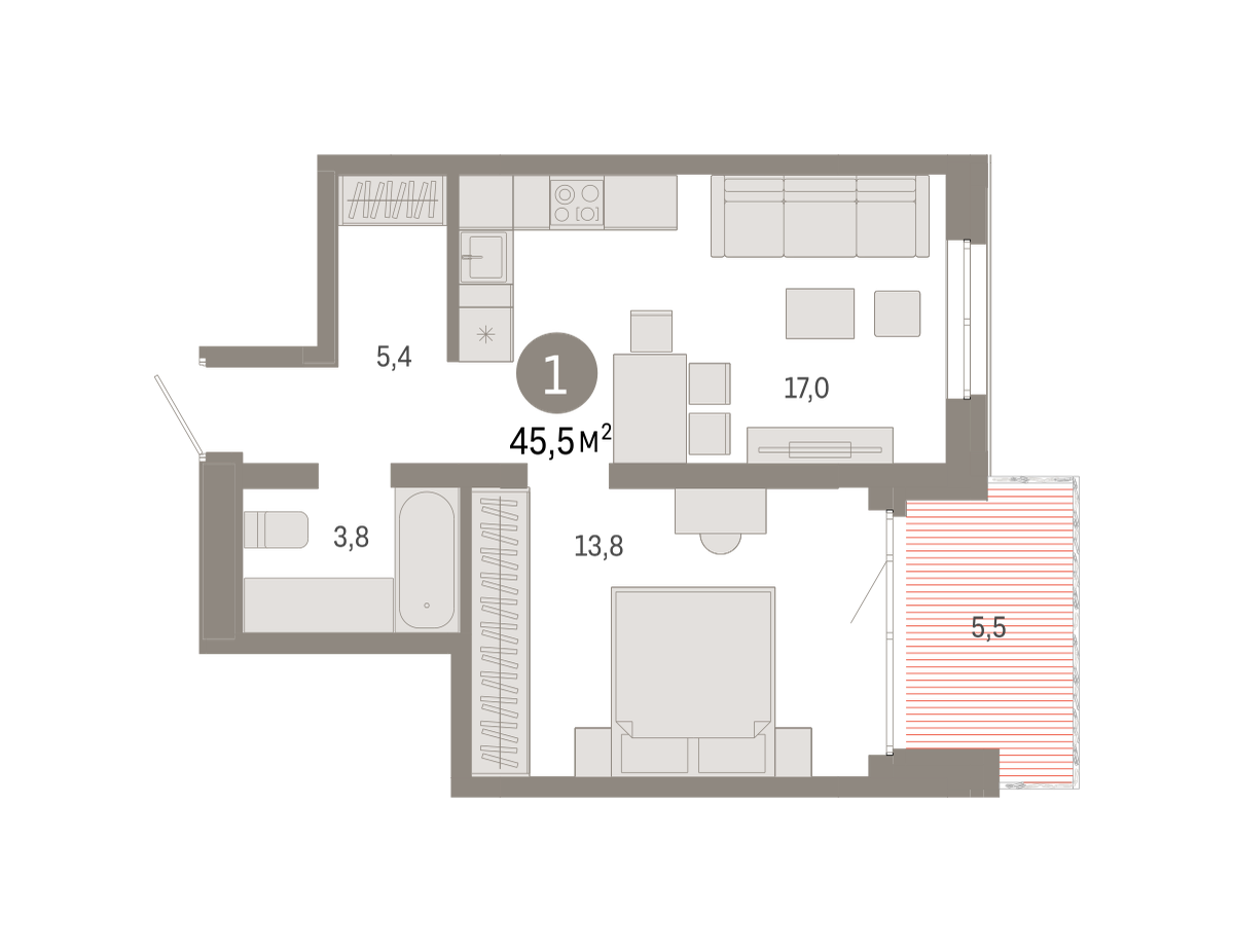 Однокомнатная квартира в новых домах «Южных кварталов» — это квартира с объединенной кухней-гостиной, отдельной спальней, ванной комнатой и нишами под хранение. Кухня-гостиная — это общественное пространство квартиры, где удобно собираться с семьей и друзьями. Здесь легко поместится зона приготовления пищи, стол со стульями для совместных трапез, мягкие места для отдыха и телевизор. Также в квартире спроектированы гардеробные и хозяйственные комнаты. Есть варианты квартир с тёплой лоджией, где можно разместить рабочее место, или собственной террасой на первом этаже. Купить однокомнатную квартиру в районе Южного автовокзала в Екатеринбурге выгодно напрямую от застройщика «Брусника».