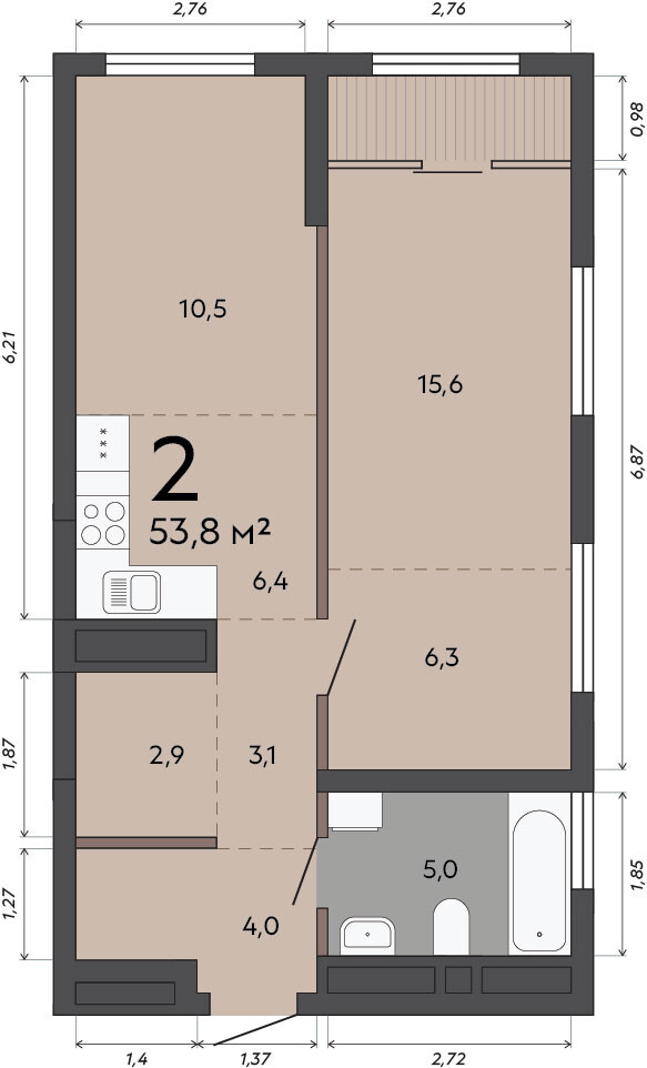 56.10 м² | 19 - 21 эт.