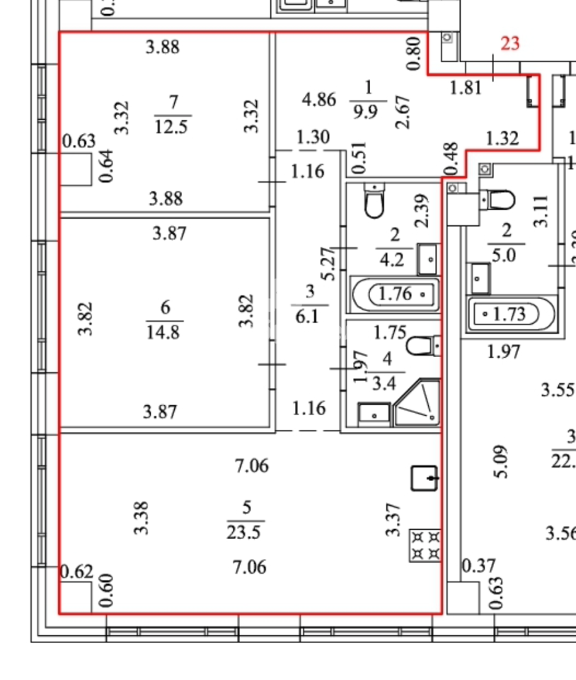 В квартире имеется два санузла, что добавляет удобства при проживании семьи. Жилая площадь составляет 28 квадратных метров, а площадь кухни – 23.5 квадратных метра. Это идеальное место для тех, кто ценит пространство и уют.