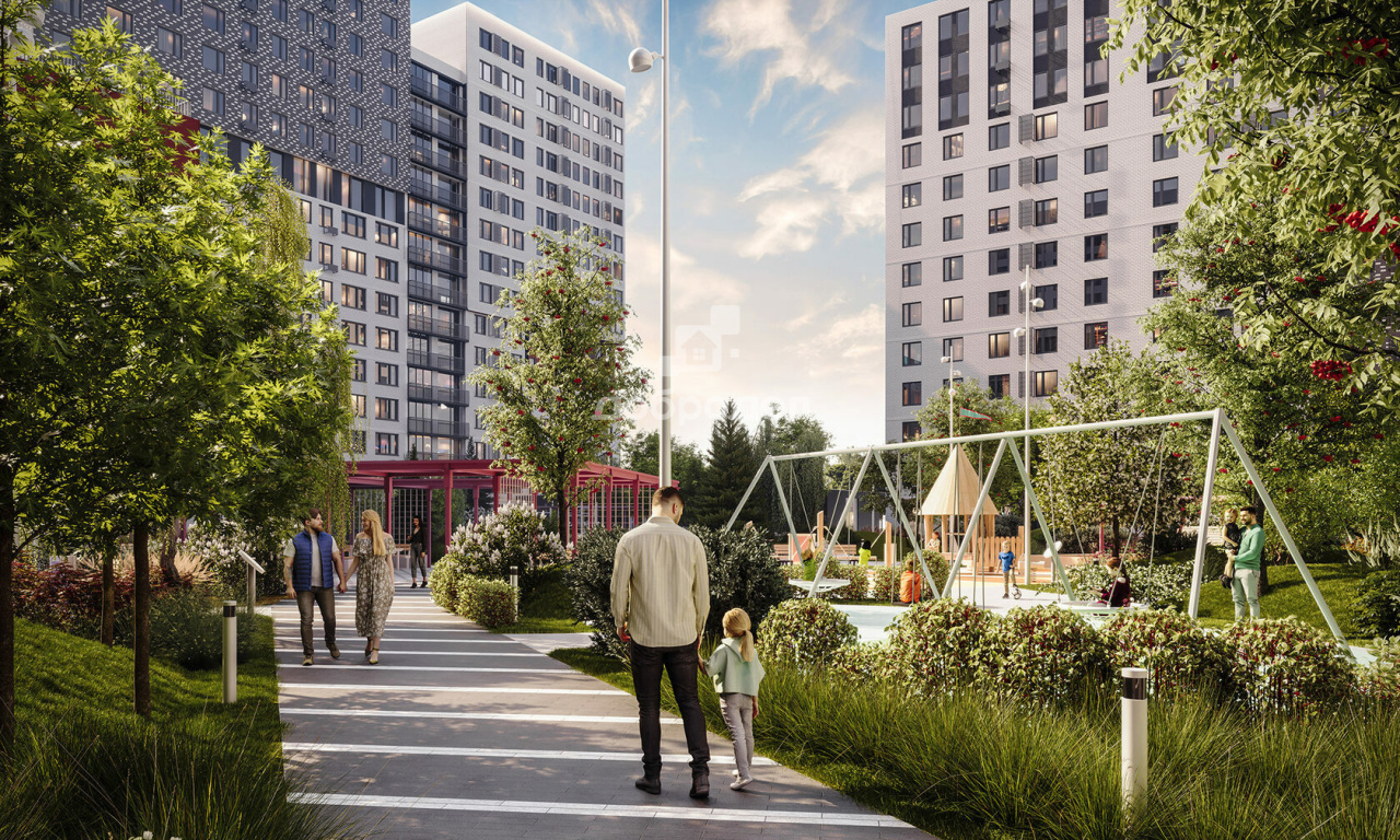 Хороший новый дом в развивающемся микрорайоне, где будет все новое. В домах кофейни, магазины. Квартал будет соединять аллея с фонтаном. Приобретение недвижимости в этом месте престижно и ликвидно.