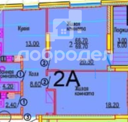 Квартира на 6 этаже, площадь квартиры 56,8 кв.метра(жилая комната 20,3 кв.м., жилая комната 18,2кв.м., кухня 13 кв.м.), кухня 2,7 м.