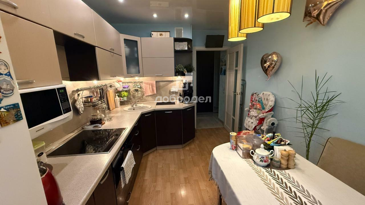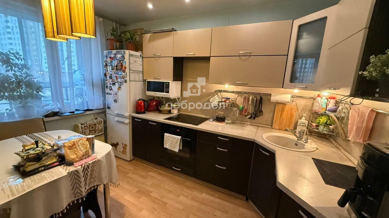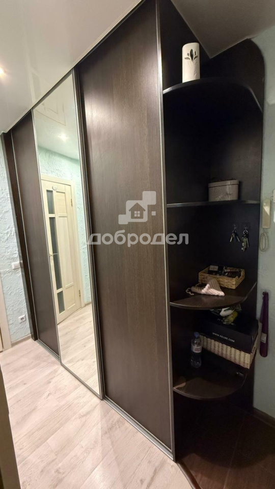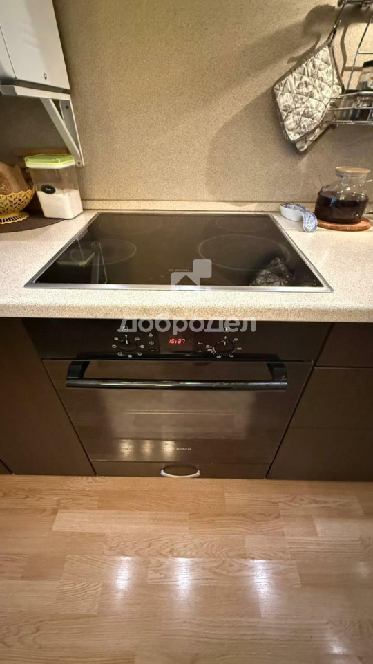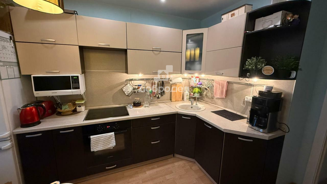 В квартире остаются встроенный шкаф-купе и кухонный гарнитур.