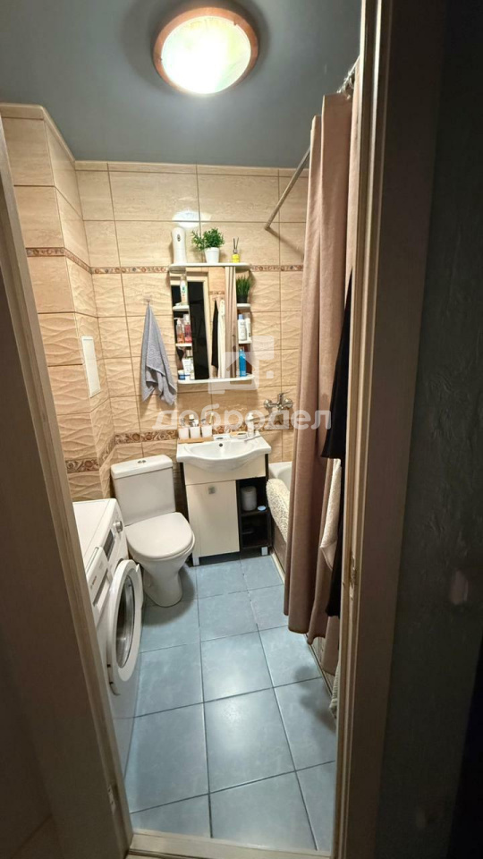 Санузел: просторный и современный, с качественным ремонтом, плиткой, унитазом, раковиной и ванной.