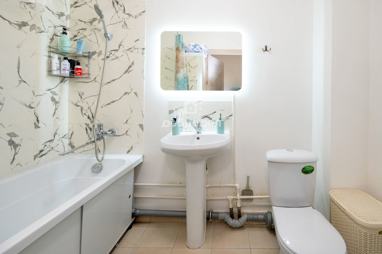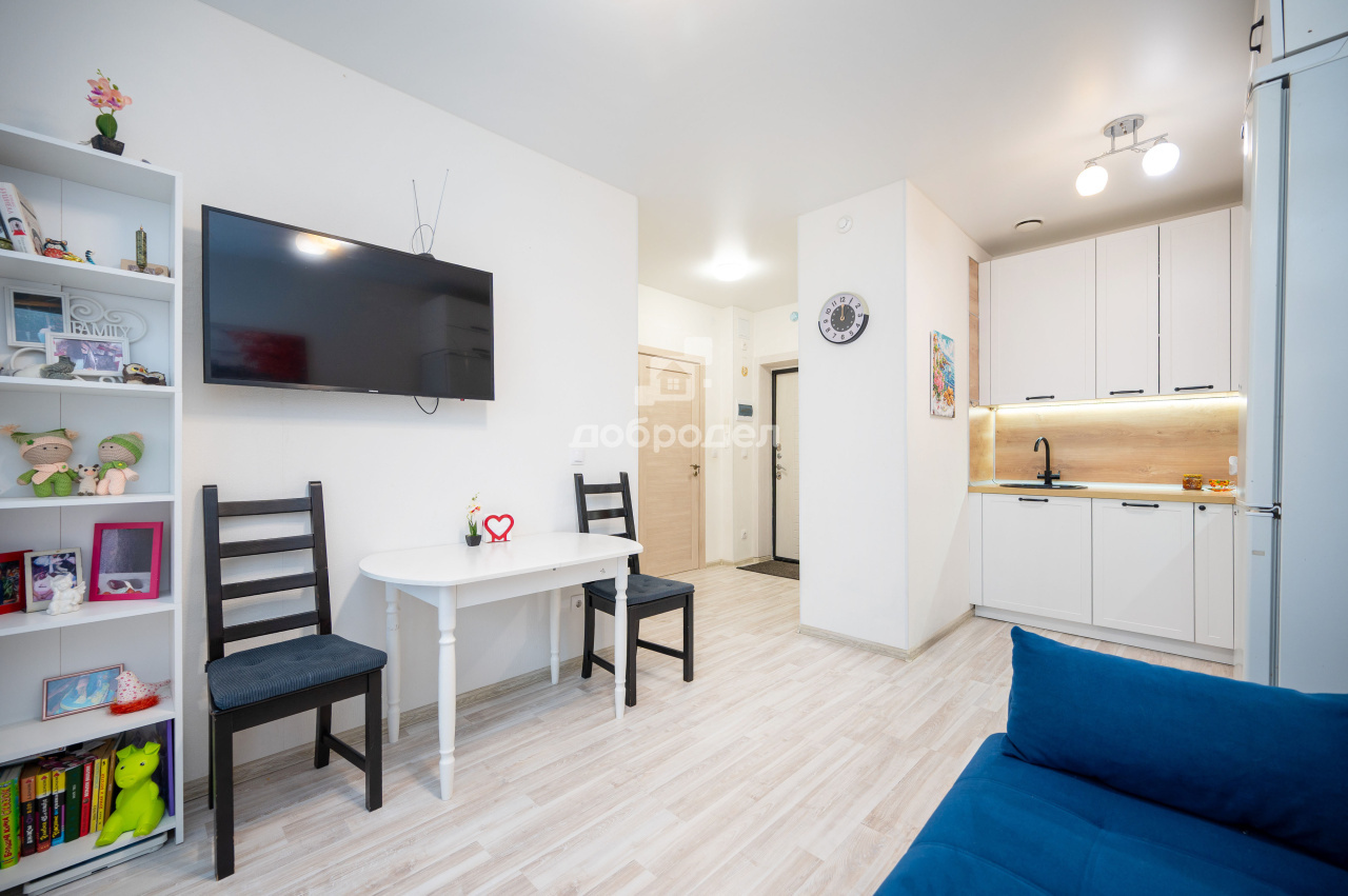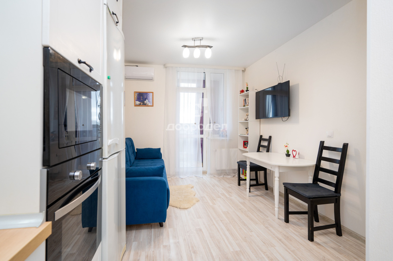 - Большая кухня-гостиная 17 м2, комната 12 м2. Ванная и туалет совмещённые, на полу в кафель. В квартире остается: кухонный гарнитур, варочная панель, духовой шкаф, встроенная микроволновая печь, посудомоечная машина, шкаф в спальне, кондиционер. Светлый ламинат и матовые/белые натяжные потолки делая помещение визуально больше и светлее.