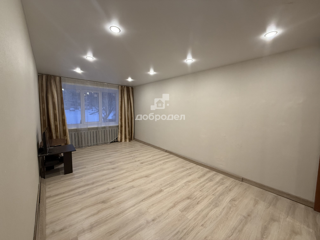 КВАРТИРА в чистом состоянии. на полу ламинат, стены оклеены обоями.потолок натяжной во всей квартире, точечные энергосберегающие светильники. Окна пластиковые.Квартира сухая, теплая очень. Батареи чугунные. Площадь комнаты 18,6 м кв. В квартире остается 3-х створчатый шкаф и кухонный гарнитур, стол.