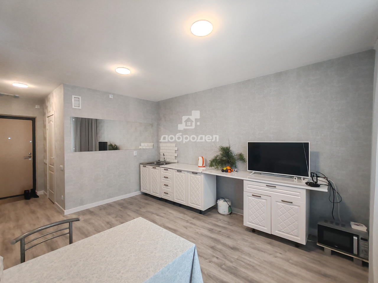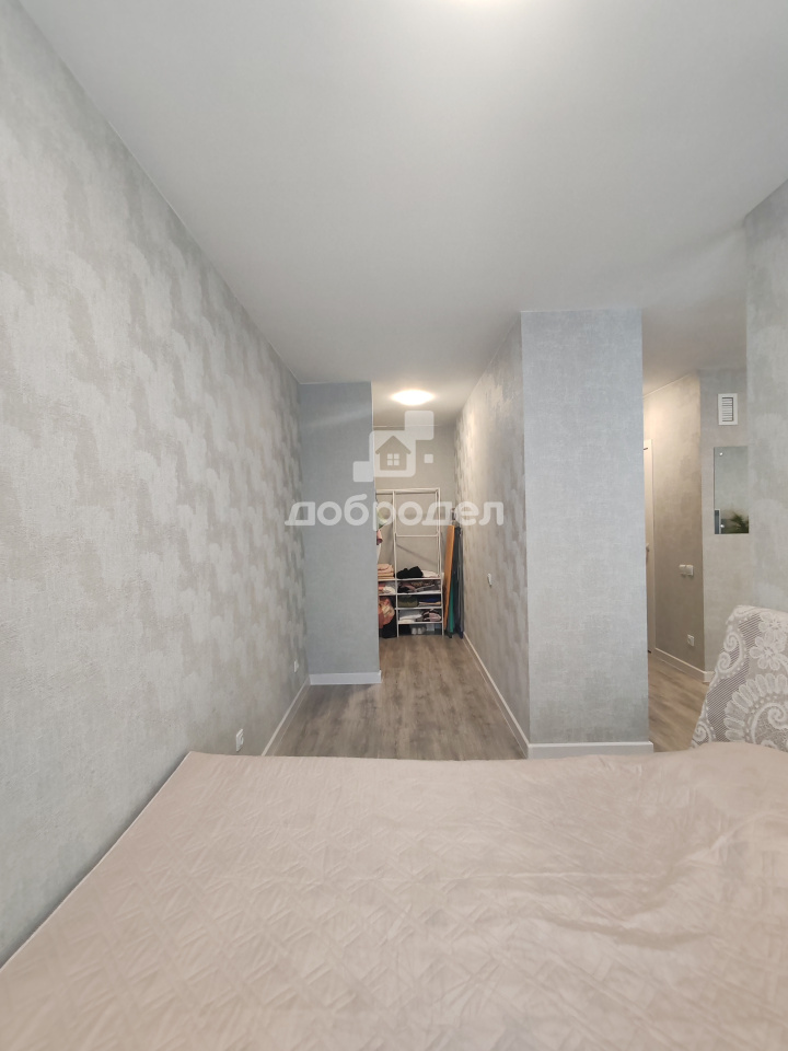 Простая и рациональная планировка: изолированная спальня с гардеробной и кухня Ключевое преимущество — большая кухня с большими окнами и выходом на лоджию с панорамным остеклением. Окна выходят во двор, что обеспечивает тишину и приватность. Так же в квартир имеются места для хранения вещей.