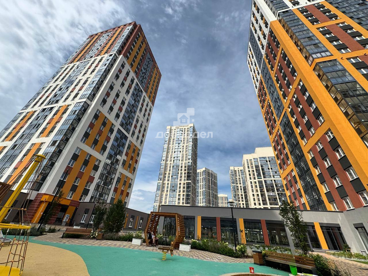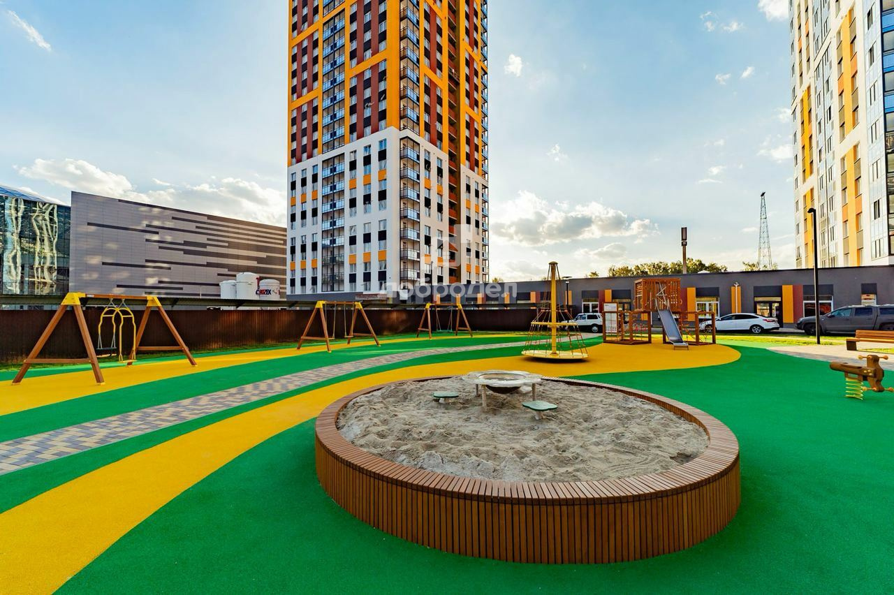 Квартира с чистовой отделкой: обои на стенах, красиво уложенный пол, межкомнатные двери, входная сейф-дверь и качественный набор сантехники. Счетчики расположены в подъездах. Просторные дворы, огромный парк.