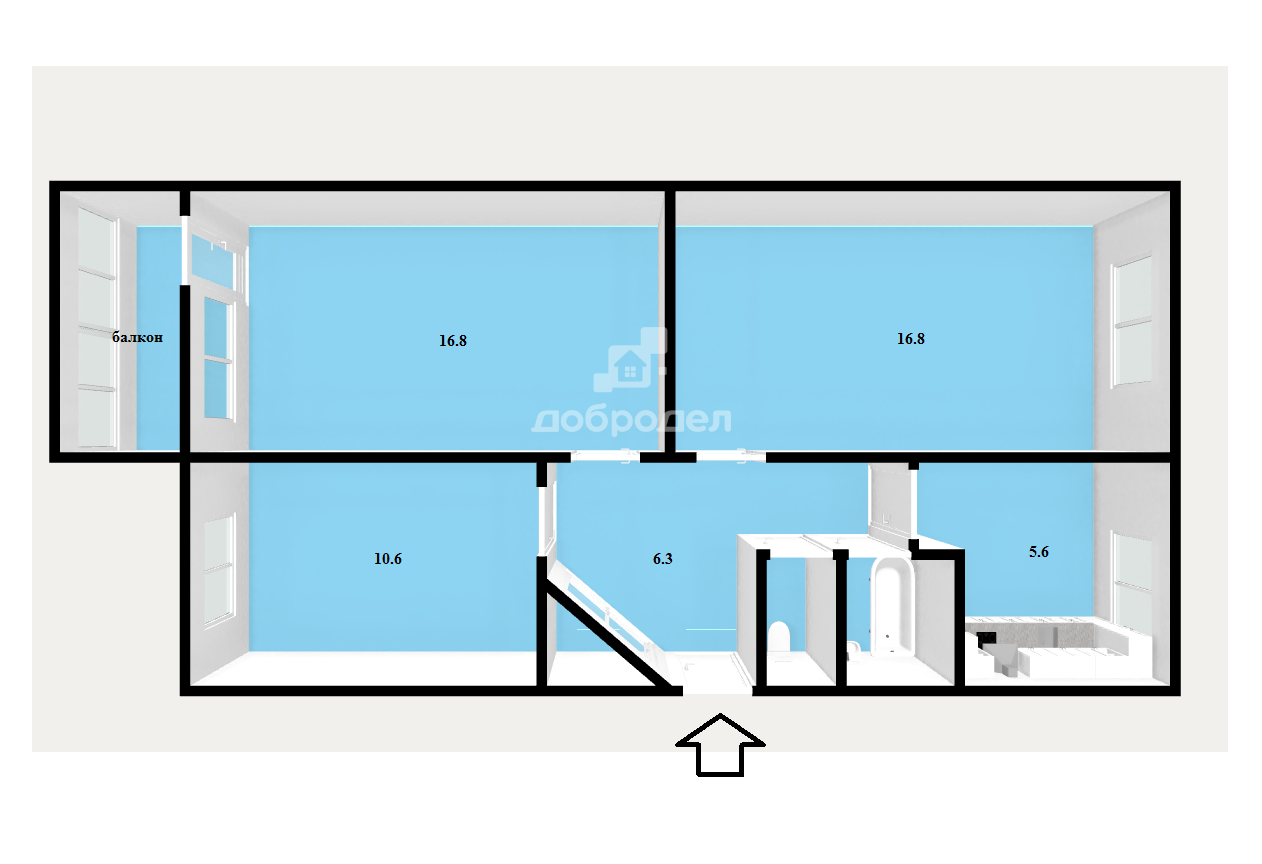 Очень удобное планировочное решение, все комнаты изолированные - 16,8 кв.м, 16,8 кв.м и 10,6 кв.м. Раздельный санузел - удобство для всей семьи. Квартира в хорошем состоянии по ремонту. Всё, что есть в квартире, остаётся новым хозяевам. Заезжай и живи!