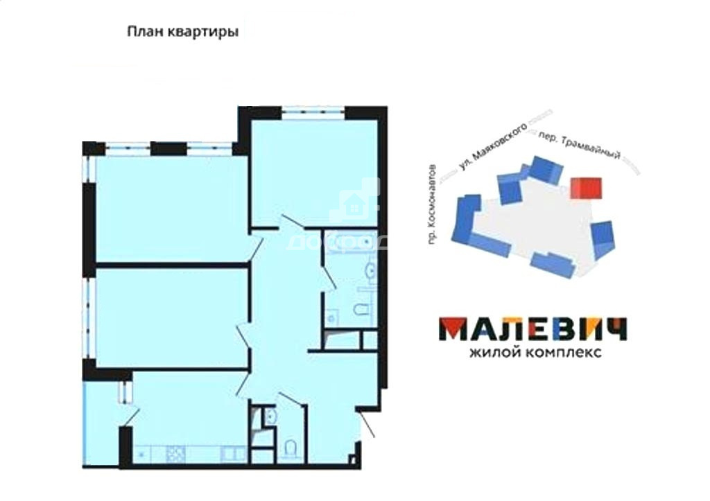 Продам 3к квартиру в ЖК "Малевич" площадью 90 м2 + лоджия