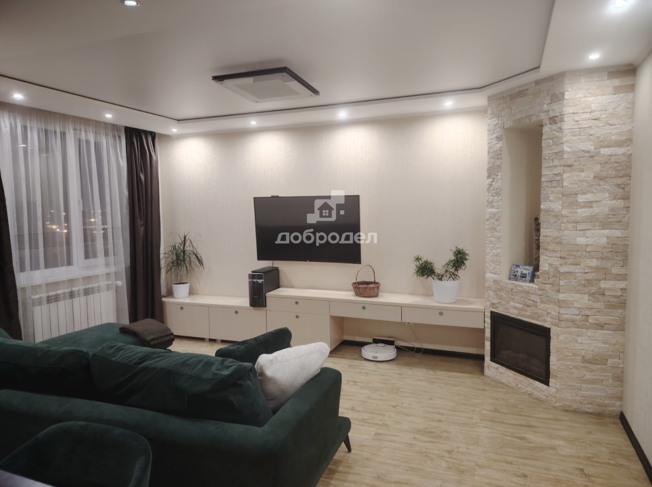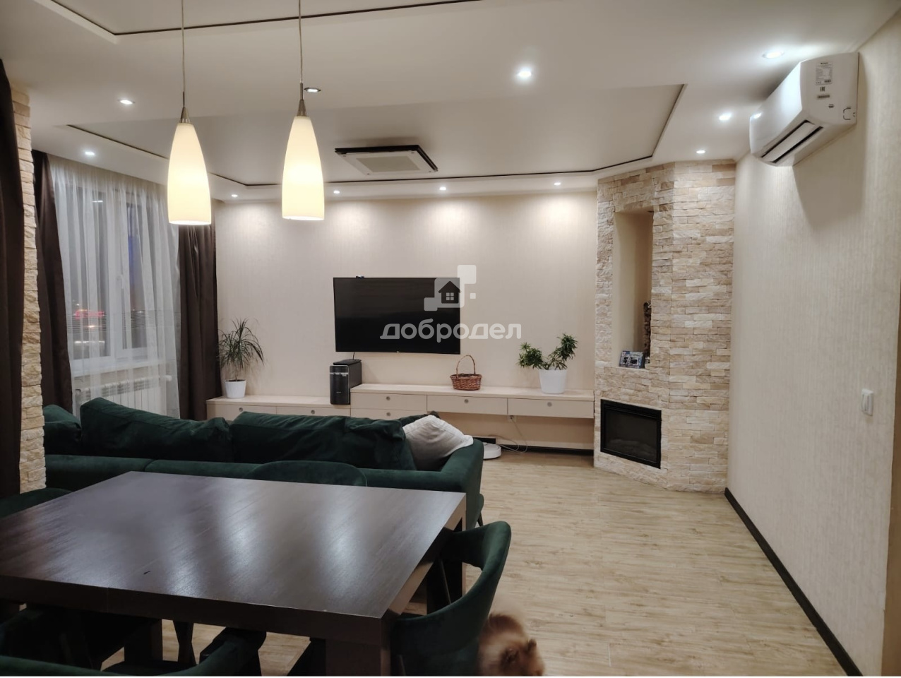 Просторная 3-х комнатная квартира с удобной планировкой. Кухня объединена с гостиной и с выходом на лоджию. Две изолированные спальни, в одной из спален имеется гардеробная. Два раздельных санузла. В гостиной и спальне установлены кондиционеры. Квартира оборудована кухонным гарнитуром с техникой (посудомоечная машина, духовой шкаф, варочная поверхность) Два больших встроенных шкафа в коридоре. Встроенный шкаф в детской комнате. Джакузи и душевая кабина. Качественный ремонт. Свое ТСН, низкие коммунальные платежи.
