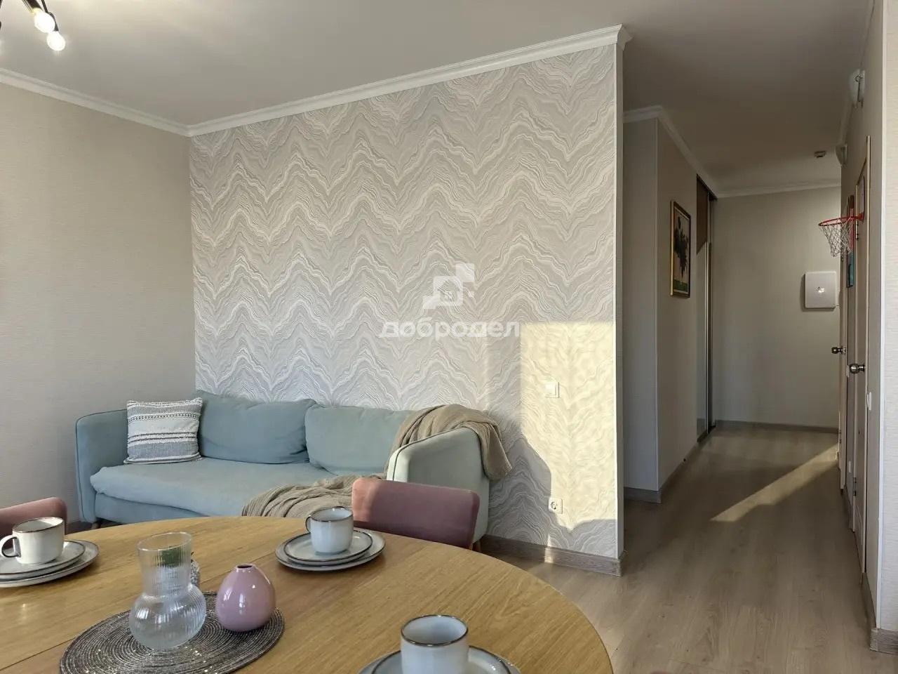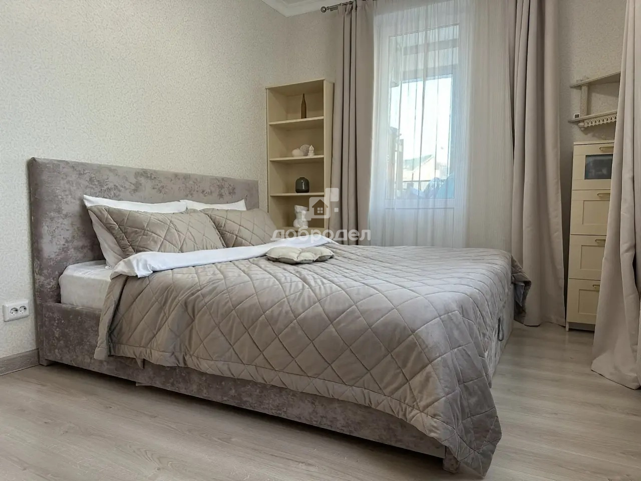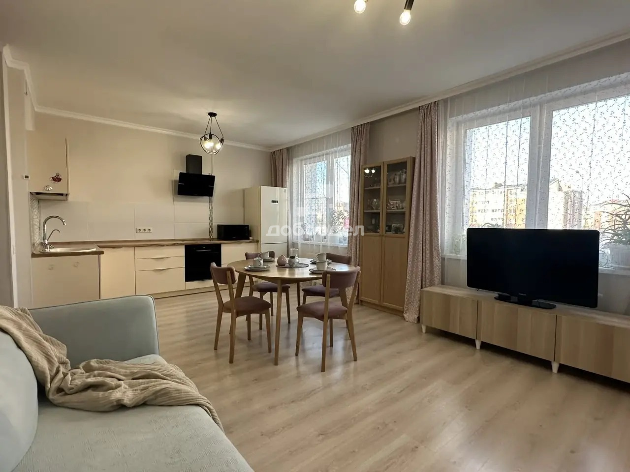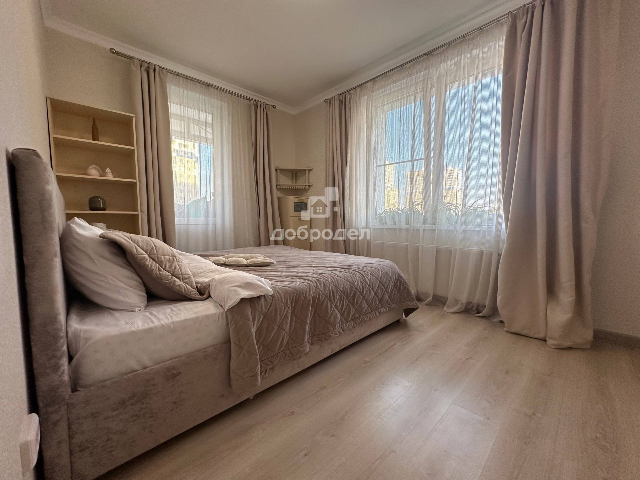 Изолированные спальни, большая кухня-гостиная, два санузла. Квартира расположена на две стороны, всегда проветриваемая и солнечная. На полу — качественный ламинат 33 класса.