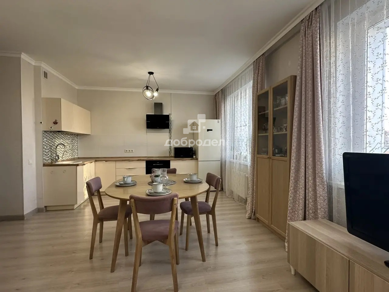 Очень светлая и уютная квартира с хорошим, качественным ремонтом. Установлены кухонный гарнитур со встроенной техникой и кондиционер.