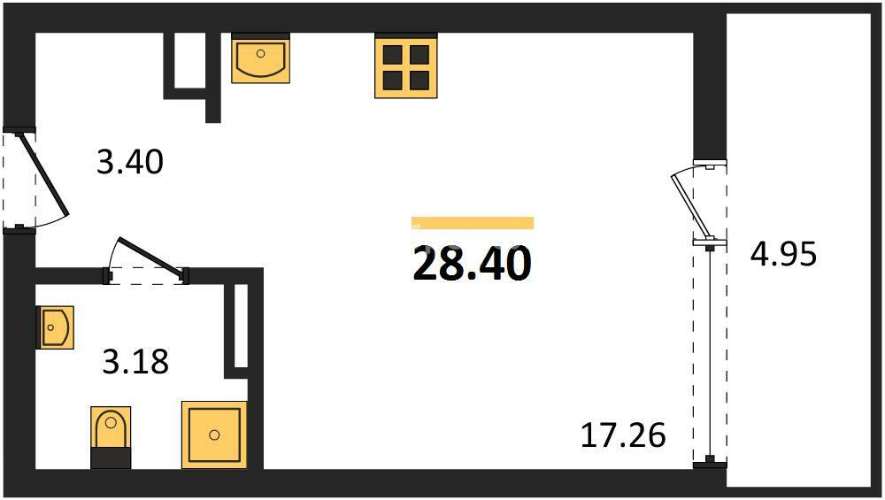 Студия 28 м² в готовом доме!