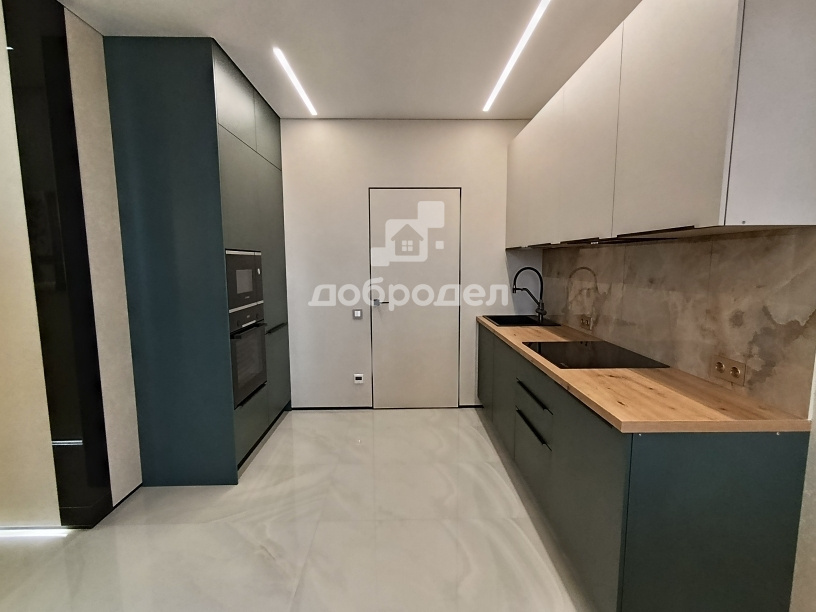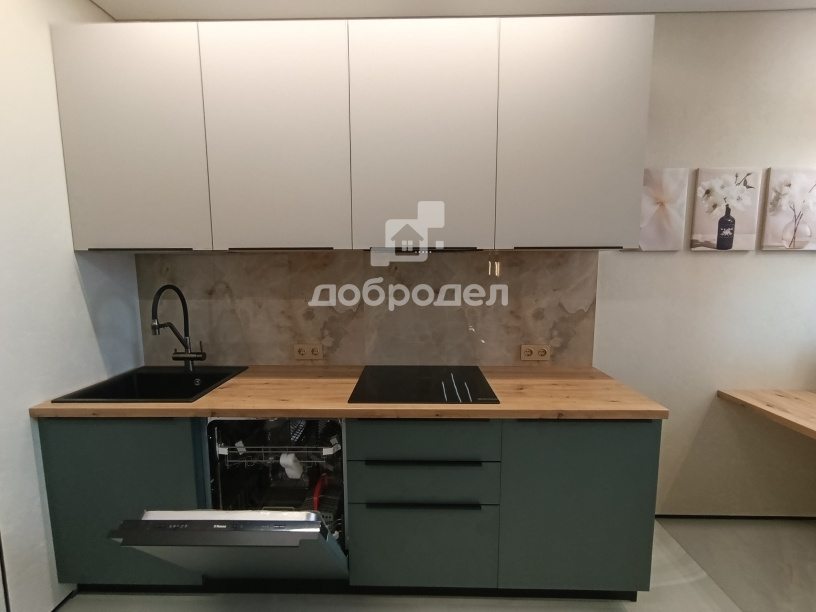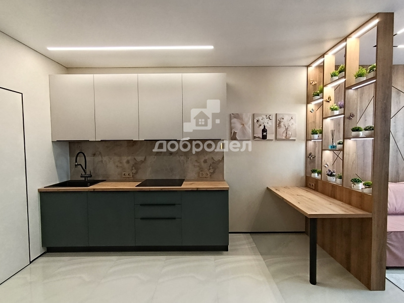 Кухня-гостиная 22кв.м разделена на зону кухни и зону отдыха.