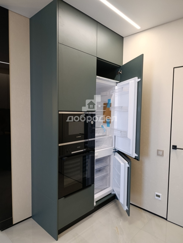 Кухонный гарнитур со встроенной техникой фирмы BOSCH: холодильник, духовой шкаф, СВЧ-печь, посудомоечная машина.