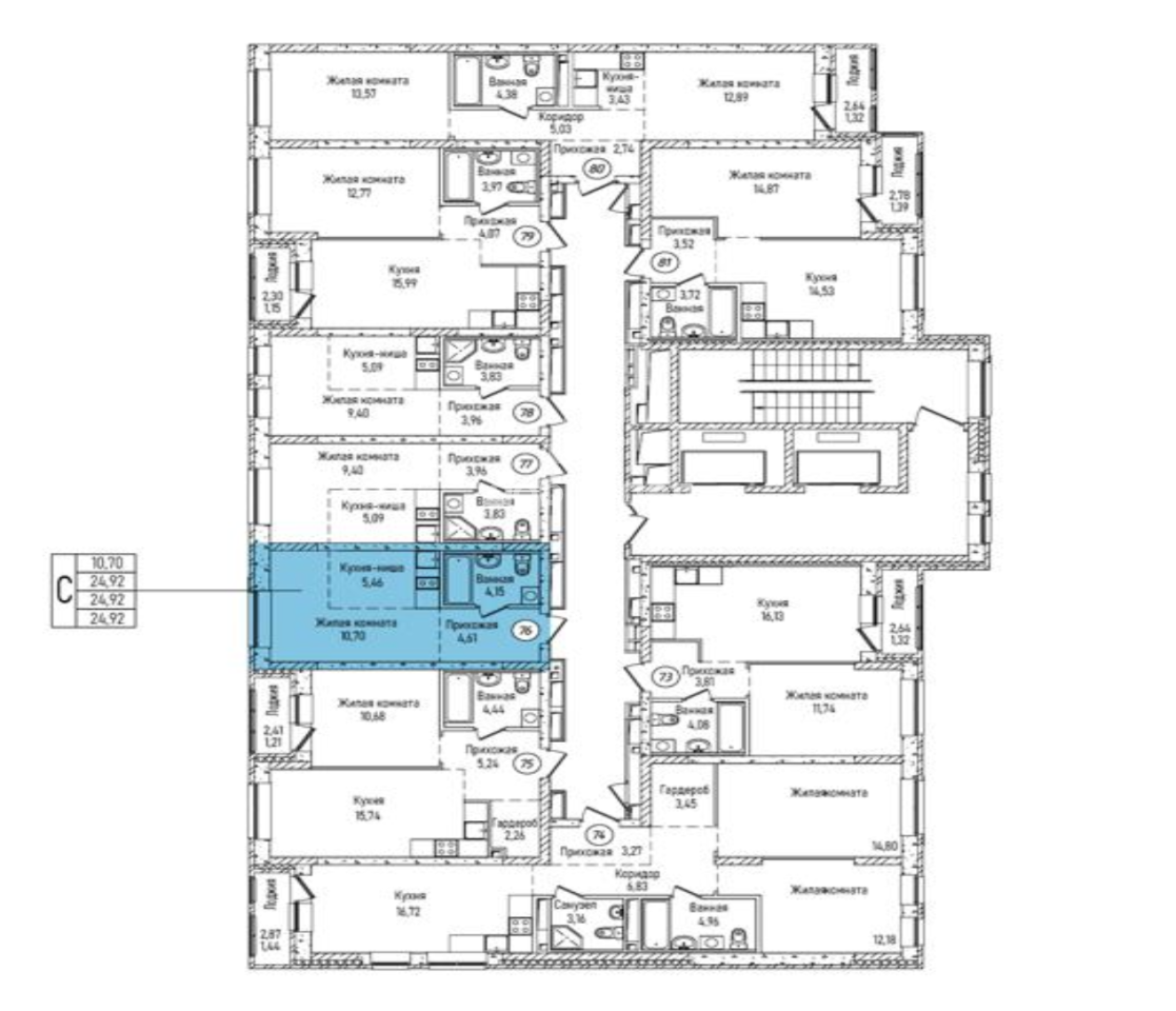 Студия площадью 24,92 м² на 10 видовом этаже - отличный вариант как для жизни, так и для инвестиций.