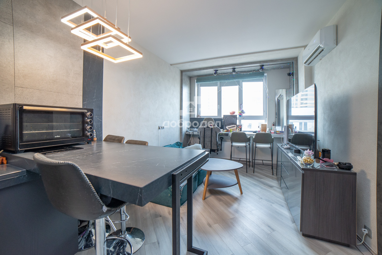 КВАРТИРА: Квартира очень чистая, просторная, комфортная планировка: кухня-гостиная и отдельная спальня! Санузел раздельный, в душ встроен хаммам. Интерьер продуман до мелочей. Современные отделочные материалы высокого качества, ремонт делали для себя - на материалах не экономили: дизайнерская отделка с использованием керамогранита для устройства рабочих поверхностей на кухне-гостиной (обеденный стол, рабочий стол на месте подоконника). Стены - декоративная штукатурка. На полу – кварцвинил, установлен подогрев пола в душе и в прихожей. Выполнена шумоизоляция, установлены кондиционеры в гостиной и спальне. Продажа с мебелью и бытовой техникой: На кухне - большой холодильник на две створки с ледогенератором, посудомоечная машина, варочная поверхность встроена в стол.